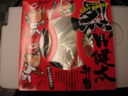 早いもんで、もう帰る日になってしまった。来た時には、これからだ~と思っていたのに。楽しい時間はあっという間だ。次は夏かな。今日は早く起きて、使った部屋を掃除&洗濯。その後、本通りにお買い物。戻ってきたら、もう11時過ぎ。13時44分の新幹線に乗るので、親戚に挨拶をして広島駅に。少し早いのですが、それぞれがお土産を買うのに時間を作りたいので早めに駅に到着。私は新幹線の中で食べるお弁当を。お土産は買うものがきまっているのであっという間に購入しお弁当を物色。いつも通り、むさしの山賊むすびを1つ買い、それとは別にお弁当を>>>>>>やはりここは新しいやつを選ぶべきということで赤いお弁当を購入。それぞれの買い物が終わり、ホームへ。すでに列車は到着しており、列車の中へ。よくみたら、広島発なのね。広島駅から発車し、すぐにマツダスタジアムが・・・・・・。今日もデーゲームなのでもう試合が始まっている。たくさんの人が詰め掛けている。またくるぞーと言いつつ、みんなでお弁当を食べ始める。私が買ったのはこれ。 W健太弁当。前田健太と栗原健太の好物で構成されているお弁当。去年の若武者弁当からリニューアル。今年はカードは無いのが残念だが。 なかなかおかずが充実。食べてみたらボリュームもあり食べ応えがある。ちなみにこんなものもあったので購入してみた。 カープ緑茶~~普通のペットボトルのお茶より10円高い160円。珈琲もあります。裏の文面もなかなか笑えました。 味もまずまずです。ともに興味をもたれた方は、是非広島へ行かれたときにお試しを!!!食べた後は、行きと同じく東京まで爆睡楽しい帰広でした。