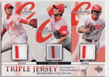 年末最後に私にとって大きなお買い物をしました。オクで落札だったのですが、意外に高くどうしようか散々迷っていましたがメモラの最後の1枚だったのでいきました。それはこちら。 【08広島 大竹・永川・栗原トリプルメモラ】これで08広島直筆とメモラコンプ達成05から続く直筆・メモラのコンプが08も無事達成できました。今回もトレードなどでご協力いただきました皆様ありがとうございました。09広島も引き続き集めていく予定ですので、今後ともよろしくお願いいたします。シリアルなどの抜けは多数ありますのでそちらもご協力お願いいたします。現在特に探しているのは07 C99 前田パズルカード 50シリ シャイニングスターパラレル 黒田 大竹 永川 梵 新井 前田08 シャイニングスターパラレル 東出 前田になります。トレードいただける方いらっしゃいましたら、ご連絡お待ちしてます。