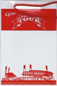 マツダスタジアムツアーはしっかりあったので写真を交えてご紹介したいと思います。集合場所で係りの人がチケットを販売してくれます。金額は¥1,000以下の3点をもらいます。 チケットホルダー スタジアムツアーチケット マツダスタジアムパンフレット中はこんな感じです。 中を開くと球場見取り図。さらに開くと左側には 観戦シートなどの写真と説明が。そして右側は フードコーナー・グッズ売り場について。これをもらってから係りの人の案内についていきます。最初は階段を昇って、陸橋上の入場口に。 入り口を入りコンコースから見えてくるは緑の芝生のグランド。まぶしいよー。 眺めがいいのう~。 砂かぶり席とベンチがよくみえます。 外野の芝生が綺麗だな~。それにしても広いぞー。 なだらかな階段がいいんです。コンコースから最初エリアに移動です。
