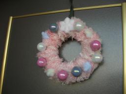 今頃ですがクリスマスリースを作りました以前シュシュを作ったくるくる巻き棒を使って毛糸をくるくるクリスマスリースですが緑の毛糸がなかったのでピンクで!ちょっと飾りをつけすぎかとも思いますが・・・お隣の女の子に「カワイイ~」と言われ喜んでしまいました +++ クリスマスリース +++ &