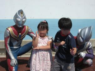 お久しぶりですいつのまにか夏休みも終わり、9月に入ってましたね夏休みは宿題すらまともにやらないやんちゃ坊主にキレすぎて体力、気力が失われてしまってました 6日は久しぶりにハウジングセンターのウルトラマンショーへ行ってきました10時30分からのショーだったのですがこの日も暑く、子どもたちを扇子であおぎながら、水分補給しながら見てました久しぶりのショーに子ども達は楽しんで、次は握手会!炎天下の中でのショーのせいか、ウルトラマン達は握手もちょっと適当な感じ・・・まぁまぁ、暑いから仕方ないさなんて思いながら次は撮影会!!私達は列の最後の方に並んでいたのですが並びながらウルトラマン達を見ていると3人いたはずのウルトラマンがいつの間にか二人になっていましたあれっ。。。と思っていたら残っているダイナとティガも膝をつき意識もうろうな感じです写真を撮るときに決めポーズすらできない状態熱中症?脱水症状??大丈夫だろうかと思いながら撮ってもらった写真がこれです今まで何度もショーには行ったけれど、こんなウルトラマンは初めてでした暑い中のショーは本当に大変ですねちゃんと回復できたでしょうか?心配です +++ ショーで買っちゃいました +++ 【中古】ウルトラヒーローシリーズSP イベント限定ソフビ ウルトラマンティガ メタリックver.大怪獣バトル ウルトラ怪獣シリーズEX EXゼットン【バンダイ】