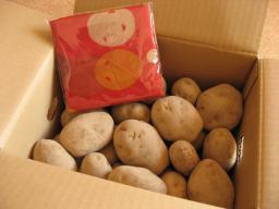 今日はカルビーさんからお届け物が!大収穫バッグとじゃがいもが当たりました懲りずにはがきをたくさん出して良かったですしばらくはじゃがいも料理が続くかな +++ じゃがいもに +++