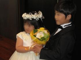 土曜日は義理の弟くんの結婚式がありました子ども達はリングボーイとフラワーガールでおてつだい!やんちゃ坊主には指輪を落とさないように!って念を押しおてんば娘には花びらをふわーってやりながら歩くんだよってリハーサルもやったので大丈夫かなぁと・・・リングボーイは照れながらもまずまずできたのですがフラワーガールはまったく花びらをまかず、動けずなので「なげて!なげて!!!」って声を出さずに叫んでいたらやっと動き出しましたなんとかできたって感じです披露宴でも新郎新婦に花束贈呈をして欲しいといわれてましたこちらは何事も無くでき、大きな風船をたくさん貰って喜んでました私も久しぶりに結婚式に参列だったのですがいいですねぇ♪新郎新婦の笑顔を見てるとこちらも幸せな気分になっちゃいます自分の時もそうだったのかなぁなんて義弟くんたちも両親への花束贈呈のかわりに生まれた時の体重のベアをプレゼントしてたんですけど私たちもそうでしたでも、私はそれを作ったんですよね普通の型紙を拡大コピーして、中にはパチンコ玉を詰めて・・・義弟くんのちゃんと作ってもらったのを見たら、自分で作ったことをちょっと後悔あぁ、なんて雑で安っぽいのを渡しちゃったんだろうケチっちゃダメですね +++ おてんば娘コーディネート +++ 「凄く豪華で可愛らしいドレスに驚きました」子供ドレス フォーマル ミッシェル ・ジュニア...【送料無料】 ヘアアクセサリー 「バラのつぼみ」 結婚式用フラワーティアラ子供フォーマルシューズ(ベビー)フリフリがキュ~ト♪ソックス・アイボリー 【送料84円~!】 +++ ウェイトドール +++