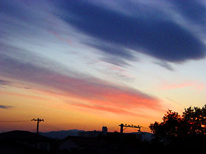 水彩画のような空だった。大胆な筆使いで勢いよく引かれた、青とオレンジのひと筆、ふた筆・・2005.11.25(C)kodawarimadam 写真になったものを見て、さらに筆を加えたくなった。ゴッホの渦、ムンクの歪み・・・さんざん遊んでみたものの、結局 元の空に戻りました。 ====ゴッホの渦、ムンクの歪み====
