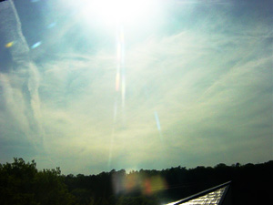 急激にオゾン層破壊進行のもよう。隣の家の屋根は反射板。眩しくてとても空など見れたものではないので、ガラス越しのまま適当にシャッター!2006.05.08(c)kodawarimadamワタシノソラ~我的天空