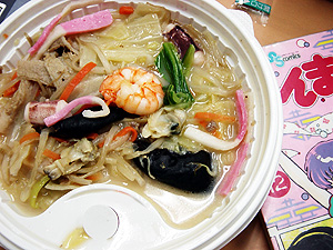 漫画づけ。。おなかが空いたので、コンビ二に行って買ってきたのがこれ。セブンイレブンの海鮮ちゃんぽん。なんと、最初買うつもりだったお気に入りの菓子パンよりも100kcal以上も低カロリー。ときにはカロリー表示もチェックするもんだ。そのパン、夜寝る前にも食べていた。。。ふとーい、断面が円形の黄色い麺。具を載せたトレーの下から出てきました。うゎ少な!残すつもりのスープも完食。いったいわたしは普段何カロリー摂取しているのかと考えてみると、3000kcal以上いっている気がします。マジで。。。