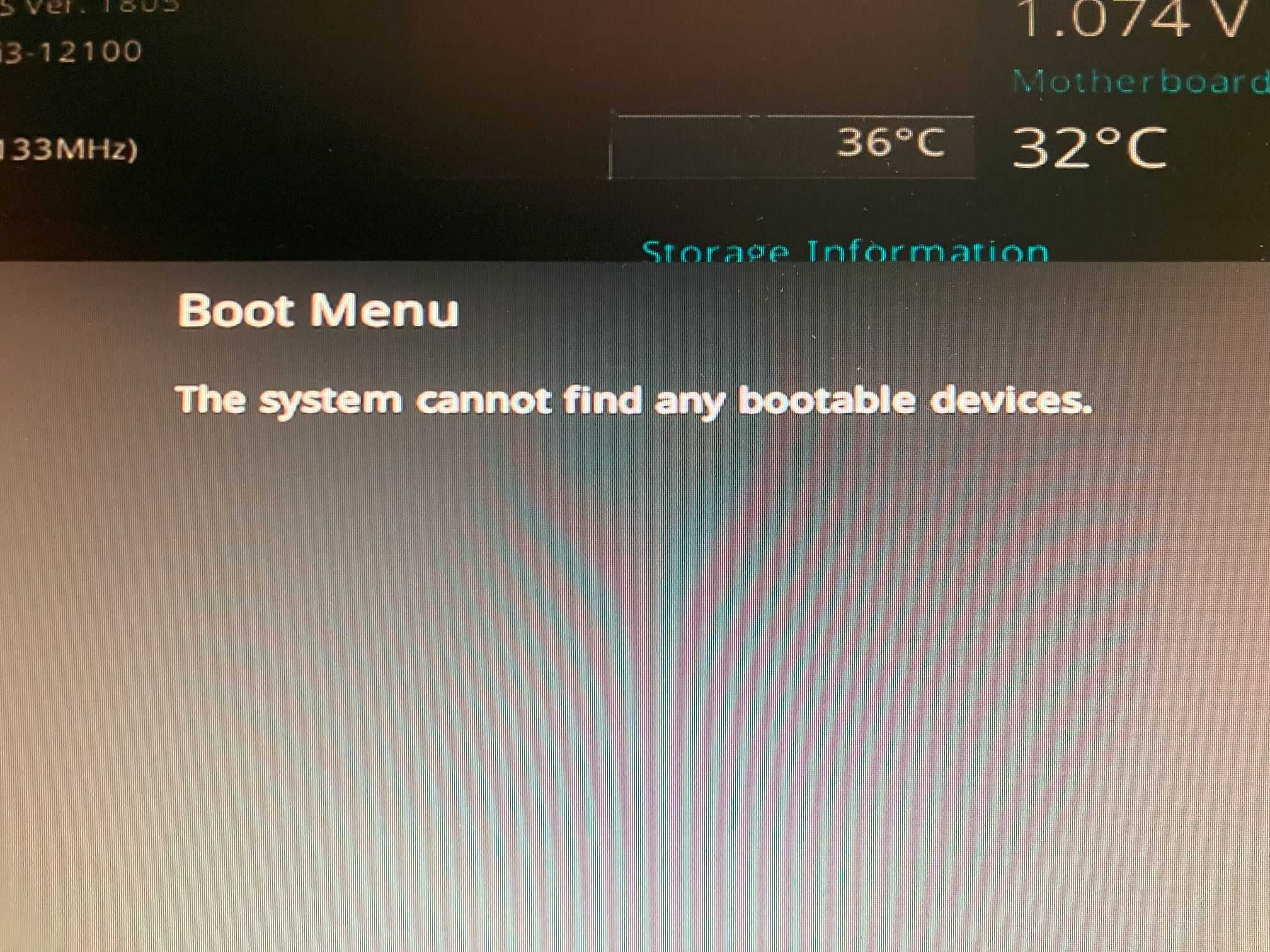 ↓BIOSに「PC(System)はBoot(Bootable) Deviceを見つけられない」と冷たく通告されますた😫