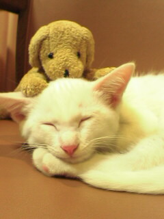 みニャ様こんにちは。 白ねこえめです。 写真。うしし。 これは王様猫ね。 可愛いすぎだから。 前のプロフ画像も 実は王様猫でした。 あ、まだ仔猫の頃だから、 王子様猫ね。 猫の可愛いところ。その2。 叱られると、 耳をヒュッて後ろに倒して 目をぎゅってつぶって、 首をすくめる。 これを一瞬でやります。 その姿が可愛いくて、 叱りながら撫でちゃうんですけどね。 猫ってば。 可愛くて面白くて、たまりませんにゃ。 サッと手を挙げるだけで、リアクションが帰ってくるのが また何ともいじらしい。はあう~。 今は私の心の中に住んでいるんですよ。 以上こえめでした。