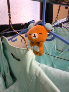 ・・・・・「逃げられない」とか「覚悟を決めた」って。そんなに新しい病院が嫌なのか?というと、そうではなくて今までの職場・そして訪問入浴Ns.の仕事が楽しく幸せだったという恵まれた我儘。たった数日、新しい職場を体験したわけですが、すっごく歩くから足がイテェとか記録が多すぎて頭がイテェとか、みんなはなんで休み時間を削って働くんだ!とかそりゃーいろいろあるけど。今の自分の生活スタイルに照らし合わせて、メリットとデメリットを冷静に考えて「いずれ残業する羽目にはなるかもしれないけれど、通勤時間が短いこと」「毎日日勤ではなく、ランダムに平日昼間を空けられる日が来ること」「やはり、お風呂仕事での腰痛が・・一日廻っただけで結構しんどいということ」「ノンストップの大変さは、お風呂でも病棟でも同じだなと思うこと」その他、いろいろ天秤にかけて新しい仕事に飛び込むことにしたんでした。病棟の患者さんを少しずつ覚えてきたら、それなりに楽しく関われるようになってきたし。昨日は7件廻ったけれど・・多分本当に最後かも!な、お宅もあったでしょう。ほんの一握りを除き、わざわざ「辞めます!」とは告げずにふわっと消えようと思っているし介助中はそんなことすっかり忘れているけれど、「ありがとうございました」のご挨拶で「あ、そうだ」という感慨がちょこっと頭を過ぎり、なんとも言えない寂しさに・・。一緒に働いてきたメンバーや、正社員で何とか残る道を探してくれた所長と話すのも今はまだなんというか・・切なく申し訳ない感じで・・・いつも大きな声で「お風呂屋さん!毎日来て!」と叫ぶお風呂大好きな利用者さん。最近悪性腫瘍のエンドステージということがハッキリして、それだけでもブルーなんですが。昨日は、声かけ一番に「お風呂屋さん、結婚して!」。。ごめんね・・私達と結婚してもお風呂桶は嫁入り道具に出来ないから。毎日は入れないんだよ・・・。。。お風呂から出て着衣中も「お風呂もう1回入る!」帰り際また来週とご挨拶したら(週2で入っているので月曜日)、「待って!連れてってぇぇぇ~」(←外にまでドップラーで漏れ聞こえてくる叫び)入る前は「また風呂?」な感じで面倒そうな97歳の男性。入ってからは足を洗う間中ガマン大会だけれども、あたたまっている最中はゆったりのんびり。着衣を終わってご挨拶すると、丁寧に「どうもありがとう。ありがとう。」と言ってくださる。昨日は行けなかったけれど「ずっと待ってたんだ!」と満面の笑みで歌う85歳。風呂がサイコーだね!と終始笑顔で「天国だー」と喜んでくださる88歳。反応が乏しくても、介護・付き添いのご家族やヘルパーさんと、和気藹々賑やかに過ごすことでいくらかでも刺激の一部に役立っている実感。いろいろな状況で在宅で療養する方々の生活に入り込んで、大好きな清潔支援をするのは本当に幸せな仕事でした。残すところ、あと一日。いつもどおり、「また来週伺いますね」とご挨拶しながら、自分のけじめをつけてこよう。【記憶に残しておきたい、事務所でのワンショット】誰かさんのハンガーで居眠りするクマ。そして、誰かさんが早朝出勤してきっちり始末した『仕事』。そして【昨日の外ランチ】 早稲田で親子丼