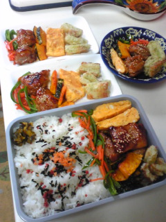 【1個だけって、やっぱりラク】☆二段海苔弁(梅干・高菜じゃこ・鮭そぼろ)☆炒り卵(ケチャップ)☆プチトマト☆ほうれん草の胡麻和え☆ウインナーシンプル炒め☆舞茸オイル焼き☆大学芋(冷凍)☆ぜんまいのキンピラ(昨日の残り)4月が終わります。いよいよフルタイム開始だー。GWは、かねてから楽しみにしていたライヴが2日間あり・・それはかろうじて、お休みをもらえました。体力的には、全然休みじゃないんですけど。次の休日は9日(土)なので、そこまでノンストップです。・・・大丈夫か、オレ。。。。今日は、ダイの中学時代のママ友さん(教養委員仲間)とランチ予定。近場でかる~くおしゃべりして来ます。前回、秋口に「きやきや」が来ていて・・土壇場でバックレてしまったので私自身は参加するのが久しぶり。このところ、連日お出かけの習慣が付いているので・・今日は普通に出かけられそう。楽しんできます。************************【夕べのウチご飯】 母ちゃん作。☆19穀米☆ゴーヤチャンプルー(ハム・ゴーヤ用豆腐←沖縄産・たまご・おかか)☆ぜんまいと糸こんにゃくのピリ辛きんぴら☆ほうれん草ともやしのナムル☆かぼちゃ・舞茸・揚げのお味噌汁洗濯OK・掃除機かけたし・・こはるもブラシ終了~。さて、出かける支度をしようかな。