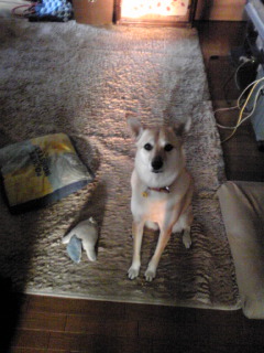 【2年生/初弁】☆ごはん(明太子ふりかけ・きゅうりのピリ辛漬け)☆小葱入り卵焼き☆プチトマト☆蕪の葉おかか和え☆エリンギソテー☆キャベツと人参のガーリックソテー☆鶏ささみのムニエル************************今日はお休みなので、ちょっとのんびりですが・・じわりじわりと、忙しさへの階段を上っております。ダイのお弁当は7時前に出来ていればなので、どうせ早起きなんですが。・・・こはるさんの目覚めが、どんどん早まっている。犬なんで、日の出と共に起きるのはわかるんですけど・・6時前から枕に顎を乗せ、耳元でクゥン・・は、やめて~~でも、弁当作製の朝は・・ダーリンが当番のことが多いんだよね。私を起こしても、結局待たされる羽目に・・【朝日の中に佇む、こはるさん】病院への出勤日と重なる日は、自分もお弁当を持っていくことにしました。今月はまだ週2だから、試運転程度ですけれどね。お弁当と重ならない日は、職員食堂で250円定食を。風呂の日は相当早く家を出ているので、お弁当はダイの分すら作れなかったしこはるさん当番も、はずしてもらっていました。でもこれからは、早出(7時半から15時半の勤務がある)以外の日勤であれば8時過ぎに家を出れば充分なので・・どちらもクリア。だが、しかし更衣室から病棟までが遠いし。・・まだ自分が何を病棟まで持って行き、何をポケットに常備すべきかイマイチ謎だし。人より早く行って、情報収集しないといけないので・・慣れるまで、しばらくは早めに出勤しようと思います。しばらく、早出や夜勤は入らないだろうから・・じわっじわっと波に乗っていく感じになるんだろうな。***************************【夕べのご飯記録】☆18穀米☆新玉ねぎとわかめのお味噌汁☆まぐろのお刺身(赤身)☆茹でキャベツのおかか和え(青しそポン酢)☆もやしとニラ・エリンギのソテー☆豚の生姜焼きさ~て・・そろそろ食材が被りだしましたよー・・