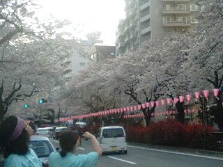 これから徐々に、雨に向かうようで・・今年の私のお花見は、昨日がピークでした。今朝は、「春休みのうちに墓参りに行っておけよ!」という号令の元子供達だけでN家の墓所に行っています。・・・・なんと!テルの運転する私のヴィッツちゃんに、ダイが同乗するという大冒険頼むよ、テル!***********************************早稲田・茗荷谷・新宿あたりを走りまわるコースの私達。あらゆるところで一斉に、白からピンクの彩りに遭遇。ぶわっと広がった神田川沿いの桜を、信号待ちの間堪能(昨日アップした江戸川橋交差点)。残念なのは、早大通りのしだれ桃(紅とピンクが美しい!)が・・昨年よりやや遅いみたいで、今年はあとひと息という感じでした。昨日一番うぉぉぉぉぉだったのは、霞のように咲き乱れる【文京区・播磨坂】。夕方、最後のお宅を終えて。オペ君N氏の計らいで(っていうか、事務所までの帰り道なんだけどw)1周してもらい・・入浴車を降りて、口を開けて見入りつつ写メる我々を、ナースマンU君が撮影したショット。事務所に戻ってから小耳に挟んだところによると、もう片方のチームも時間差で、同じ坂での花見を堪能して帰ったようでした。先日某ブログに掲載され、羨ましがっていた『ひぃ~!なTシャツ』。チームアホの3人組は、昨日のお昼もしっかりそのお店で汗をかいてきました。欲しい~欲しい~と我儘をいったところ・・Uちゃんが先日購入した○サイズを一枚、強奪して頂いてしまった。【事務所で喜ぶ私(踊っているのでぶれぶれ)】【ロゴのモデルか?と見まごうダーリンの雄姿(持ち帰り試着中)】まだ夕暮れなので去年ほどではないけれど、【千川通りの夜桜】もきれい。。これは、もうすぐお引越し予定@同僚Kちゃんとの帰り道。外回りの仕事は、季節次第で身体がしんどい分色々とお楽しみがあってよかったなぁ。う~~ん。離れがたいなぁ・・未練タラタラ。【茗荷谷駅近くの女子大前】 後片付け中のチームメイトを激写。