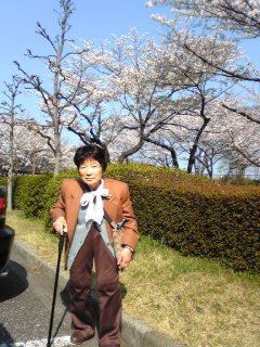 【○が丘のシンボルと桜】6時半に家を出たら、思いの他サクッと着いてしまった。いつもより、かなりすいています。30分ほど、おじいさんに挟まれて…3人でひとつのソファに並び、待ちました。その後ぼちぼち患者さんが集まり。整形は1番。今年は桜並木満開に間に合いました。母が楽しみにしていたのでよかった。今日は久しぶりに、ダ-リンの車で後乗りして貰えます。普通の恰好で来てくれますように……**********************・・・ってことで、無事今日も。処方箋を出すところまで、終わりました。カツラ、慣れてきちゃったかも。まぁ、元々を知らなければそんなにビックリしない程度に・・母もうまく被れるようになった気がします。【こんなイデタチ】【後姿・・歩くの早っ】【モミアゲがポイントらしい。】いつ買ったのか、髭男爵風ブラウスを・・腰椎圧迫骨折の進行か、坐骨神経痛か謎ですが・・ここ数週間、足の裏の痺れがヒドイという。座ったり横になるより、立っているか歩いているほうが楽だそうな。・・そして、なんというか・・喋りが止まらずやや怒りっぽく(←本人は激しくw否定)、落ち着きなし。結果、精神科のほうで薬が1種類増えました。ここ最近は8週に一度の受診で済んでいたけれど、新しい処方が増えたので、5週後に臨時で受診することになった。私の仕事次第では、ヘルパーさんを自費でお願いする予定。それにしても、病院での会計がたった「70円」。たっくさんの薬が、全部で「1400円」。ありがたいというか羨ましいというか。**********************************お口直しに今日の桜たち。【病院前のアーチ】【近くでも、遠くでも】・・・そろそろ、はらりはらりと散り始めています。