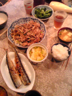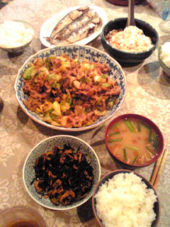 【休憩室が涼しいのは助かる】☆ごはん(狭山漬け・梅干・わかめ明太子ふりかけ)☆青梗菜のおかか和え☆炒りたまご☆煮込みハンバーグ(冷凍)☆ウインナーソテー☆ちぎり揚げのホイル焼き☆しめじ入りきんぴらごぼう*********************************ほどほどに、ふんわりと慣れてきました。まだ「コレ誰?」とか「この人はどっちがどっち?」という患者さんは居るし(殊に風呂上りの裸だと、風体が変わっているのでマジで悩みますw)スタッフも顔だけ知ってて名前は「?」だったりもするし・・。なにより、まだまだ事務的な諸々の手続きやら、処置的なもの(手技を忘れている)は怪しいんですけれど。。飛び飛びで出勤している割には、薄らボンヤリとではあるけれど全体像が見えてきました。早速、勉強会なんかにも参加したり。ウチは認知症の急性期という括りではなかったっす。認知症治療病棟として、東京都に認定を受けている場所であった。なので、何の処置をしても伝票が切れない。診療報酬一律まるめでいくらと決まっているので、張り切って90日以内に退院促進なんだな。精神科薬の影響云々だけではなく、合併症や余病での急変が既にいくつかあったりしてそれなりに活発な病棟ではあります。記録も含めて、勉強になるなぁ。病棟付きで、PSWさんとOTさんが常在してくださっているのも心強い。病院の相談室やデイケアに数名だけ~という配置よりも、はるかに助かります。相変わらずまだ、朝はオナカイタイけれど・・なんとかなるでしょう。*********************************【ダーリン作・ウチメシ】☆ごはん☆ネギたっぷり・豆腐のお味噌汁☆叩ききゅうり(醤油・ラー油・みりん・胡麻油)☆じゃが芋と玉ねぎの炒め物(コンビーフ・たまご使用)☆もやし炒めと牛焼肉☆キンピラ(弁当残り)男の創作料理、うまかったっす!