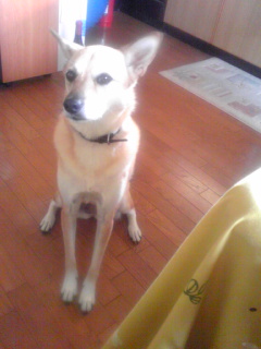 その匂いにつられて、静かにオスワリを続けるこはるさん・・。