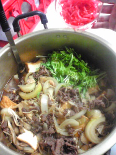 ☆牛薄切り・玉葱・えのき・舞茸・厚揚げ・しらたき・水菜
