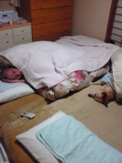 明日も休めず、会社で事務処理だそう(ノ_・。)。