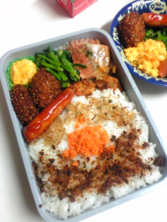☆隠し二段海苔弁(間に海苔醤油・鮭そぼろ・かつおふりかけ・じゃこ)