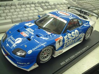 久々にミニカーの事。AUTOart 1/18モデルESSO Ultraflo SUPRA 2003モデル02のチャンピオンカー ウェイトが40kのっているので第三戦の菅生の時の車輌です。GTカーは人気があるのですぐに売れてしまい困ってしまいます。ボクも買って帰りたいのですが、帰った瞬間に3歳児に破壊されるのが目に見えているのでなかなか買えません(w;
