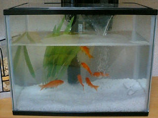 子供がきんぎょをもらってきました。5匹も、、、。魚など飼ったことない我が家には当然水槽などあるはずも無くペットボトルくりぬいて泳がせていたら翌朝3匹死亡、(-人-)。そしてその日の夕方また5匹追加。、、、。、、、、、、。、、、、、、、、。だめだ、水槽買いに行こう。