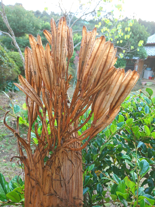 枯れた帯化ユリは自宅に持ち帰りました。珍しいので室内に飾るのです。