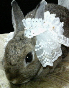 (どうかしらん??花嫁風でしゅ。。誰かもらってくれるかしらん~♪きゅふふん~♪馬子にも衣装とは失礼だじょっ!!ママさん!!ダンダン!!byこはる)