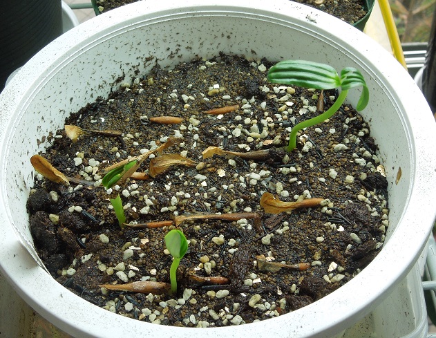 10日目に1個発芽し、2週間目に2個発芽しましたがその後は全く発芽していません。私が5月末に蒔いた種のうち10個を小田園芸さんが9月初めころ蒔いたら4~5個発芽しました。一晩水につけてメネデールを付けて蒔いたそうで、やはり2週間くらいで発芽したそうです。種まきも手抜きはダメみたいですね。