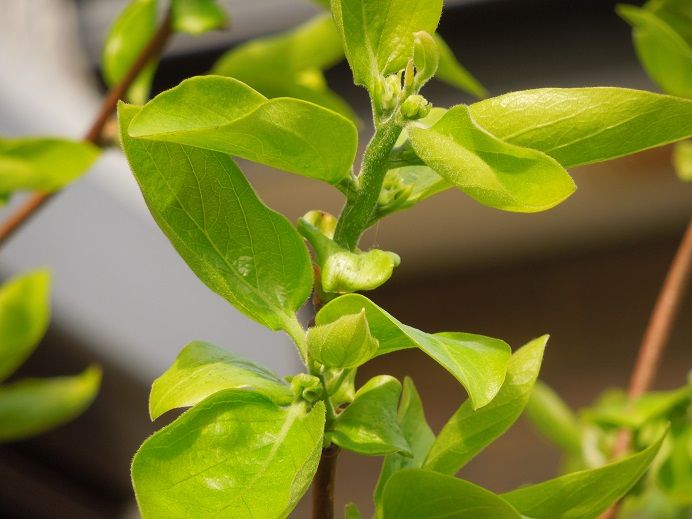 Persimmon flower is inconspicuous but new leaves are beautiful.