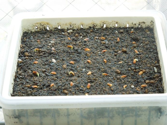 室内では最低気温が20℃を下回ることも無くなったので、残っている種を蒔きました。中には25℃を上回らないと発芽が厳しいものも有るようですが、大体は20℃で大丈夫みたいです。発芽が始まっています。