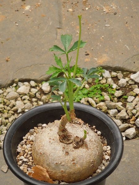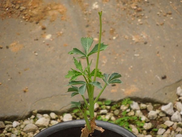 室内に取り込んでいた錦さんごを外に出しました。室内では日照時間が足りなかったり日差しが弱かったりなのか、細くて薄い緑の細い芽が伸びてしまいます。