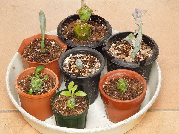 左端が親。簡単に節で外れるので、バラして挿し木にします。