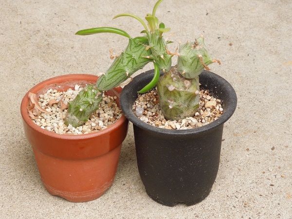 これも簡単に節から外れます。左側は右側の親から外れたのを挿し木にしたもの。
