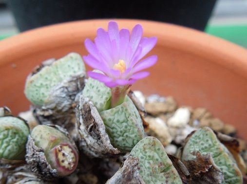 コノフィツムはまだ一度も実生したことが無いので、種が採れたらと、先日入手したコノフィツムを一緒に置いてみました。