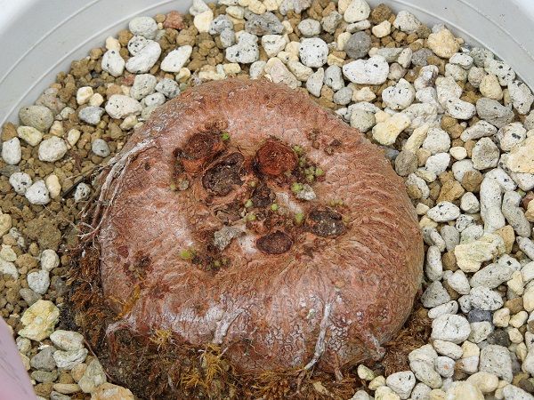 葉を落としていた断崖の女王と緋牡丹、陽当たりの良い場所に移動したからか緋牡丹に新芽が出始めていました。動き始めた緋牡丹だけ屋内に取り込みました。他の断崖の女王はまだ葉を落とさないので屋外に放置です。毎年12月末には、葉を落としていないものは切り落として屋内に取り込みます。