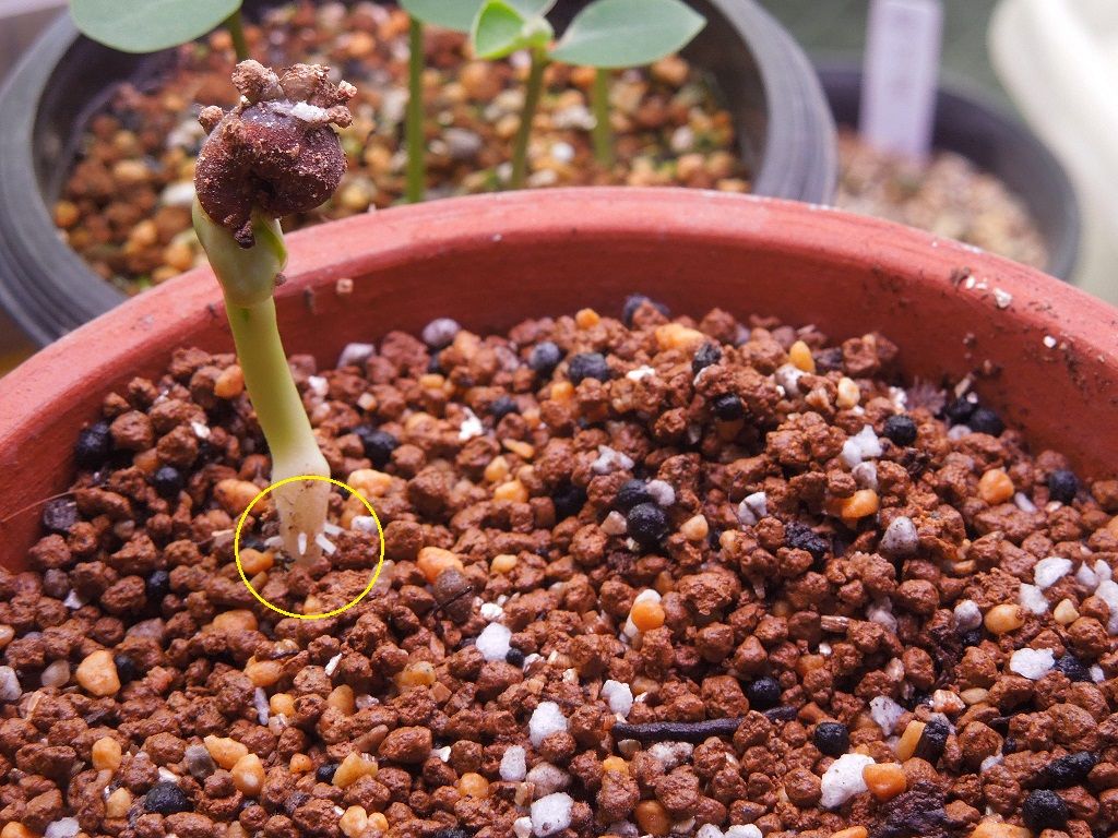 1個だけ傷を付けている時に殻が割れて剥がれてしまった種がある。