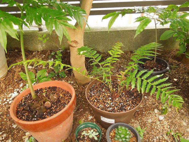 後ろの袋は金環蘇鉄とシアメンシスの袋蒔きとパキポディウム・デカリーの挿し木。