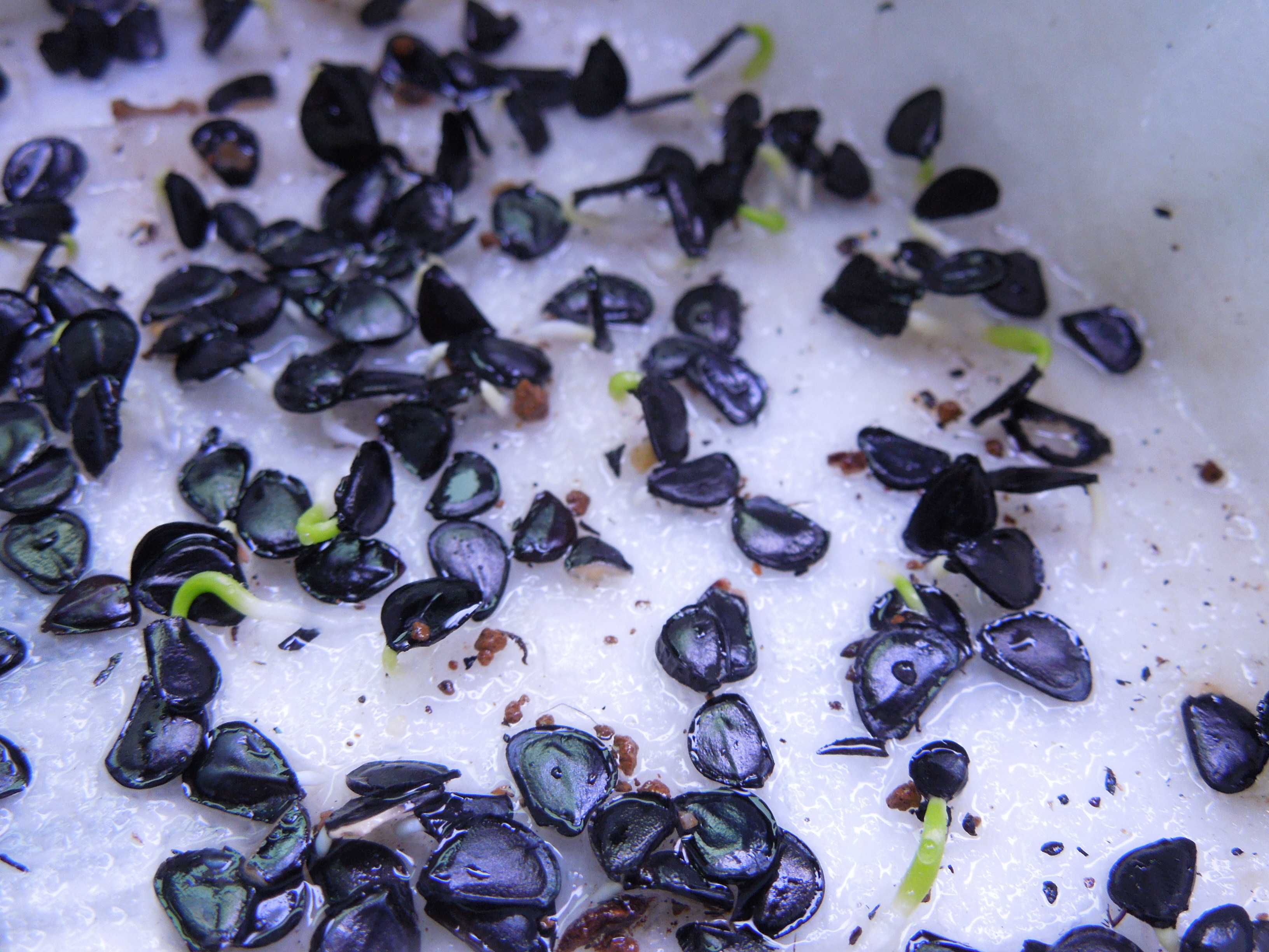 初めのうちはようすを見ながら少しずつ蒔いていたが、問題無く発芽するようなので・・・