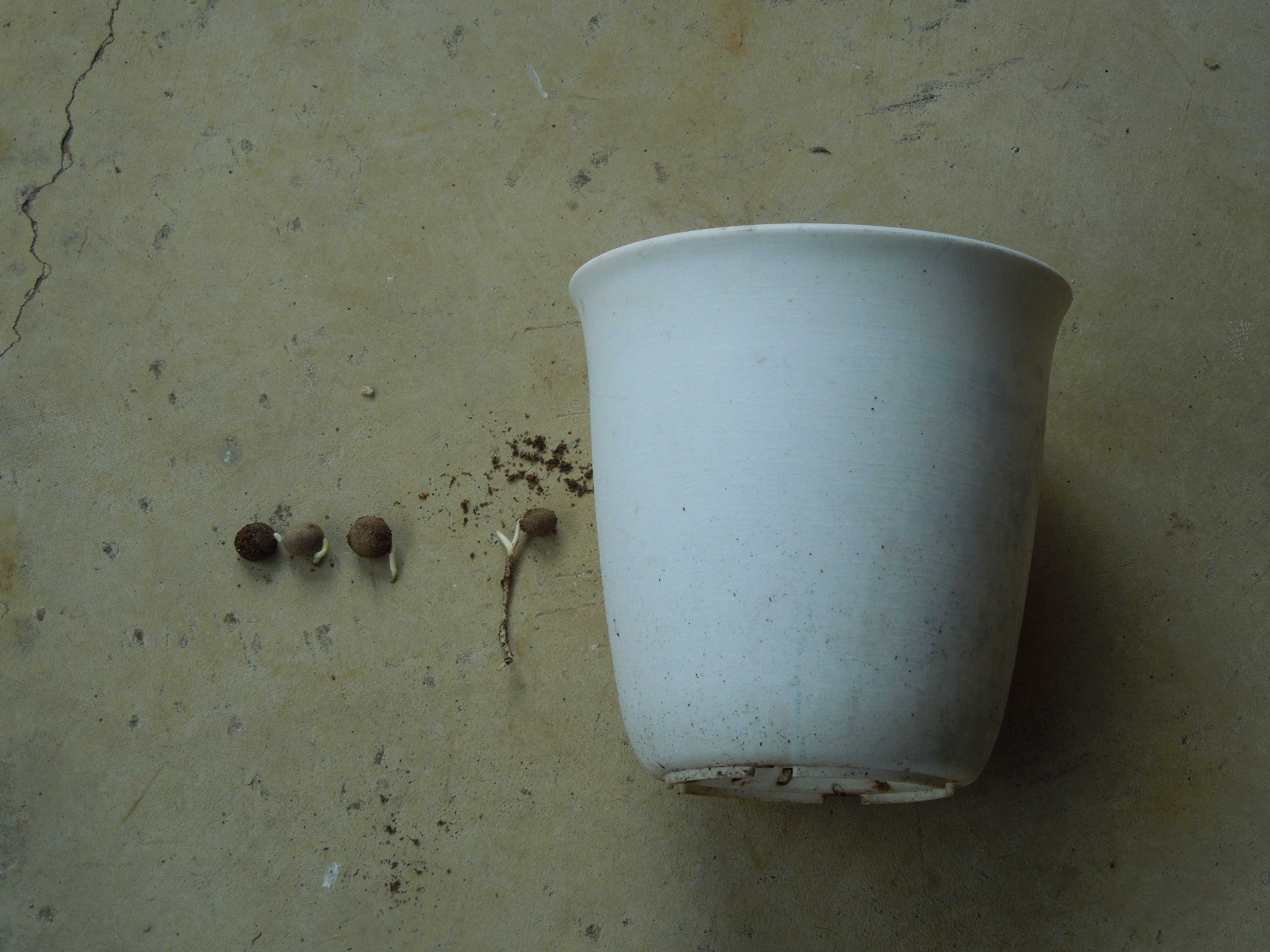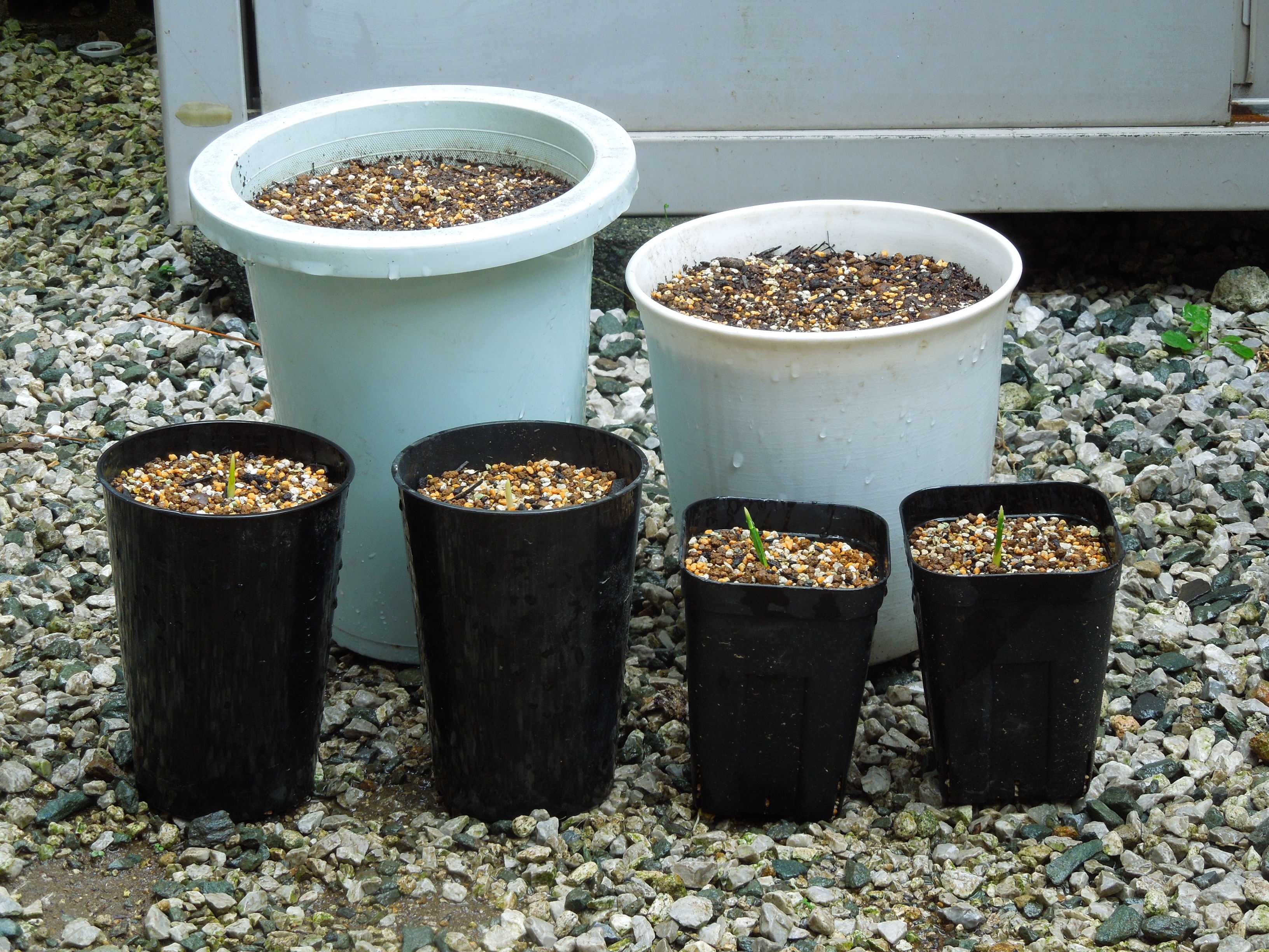 鉢のまま開墾地に植えてしまおうか、大きい深鉢に植え替えようか???