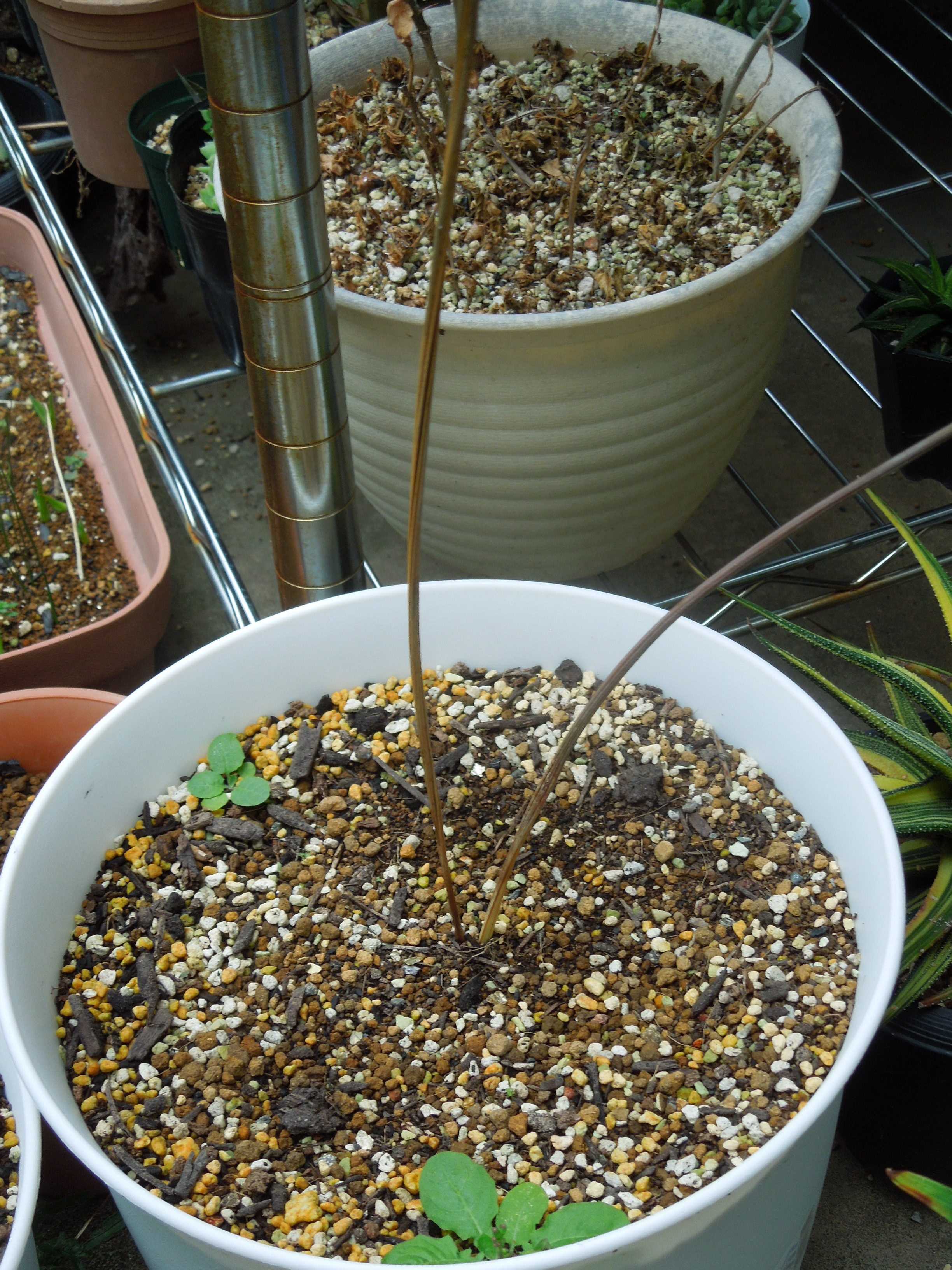 実生苗は4月初めに植え替えをしたが、1本はダメになったみたいだ。