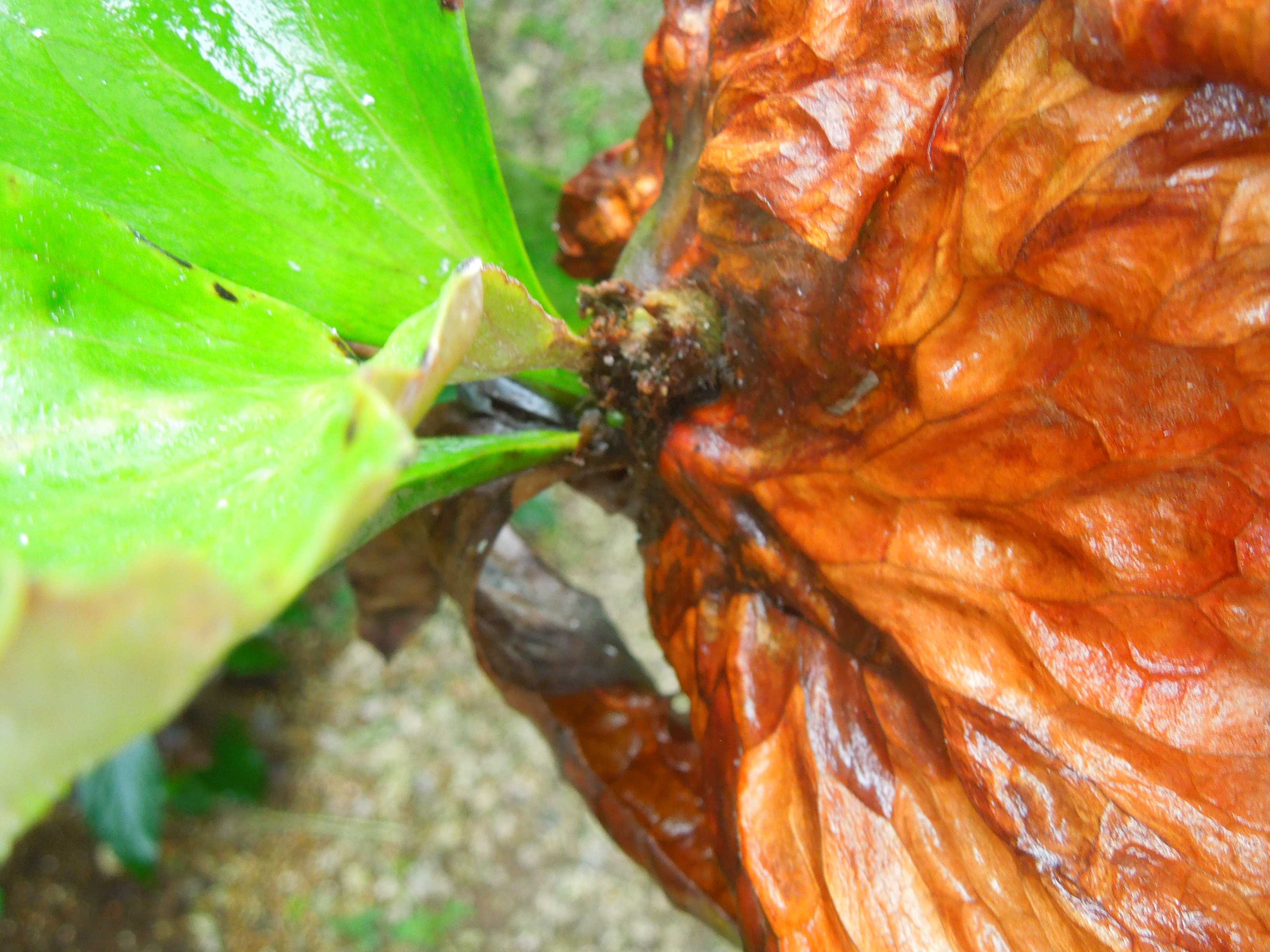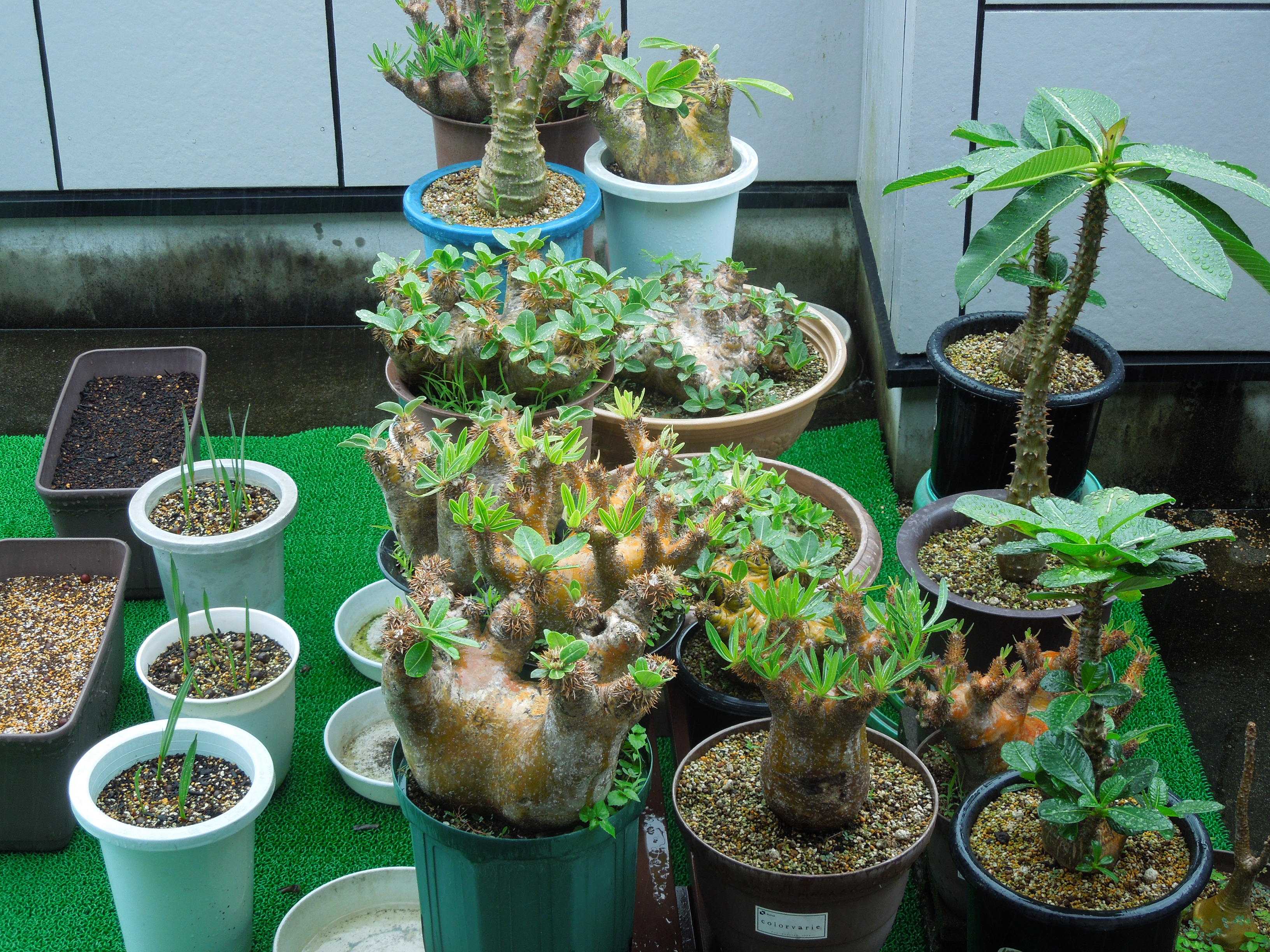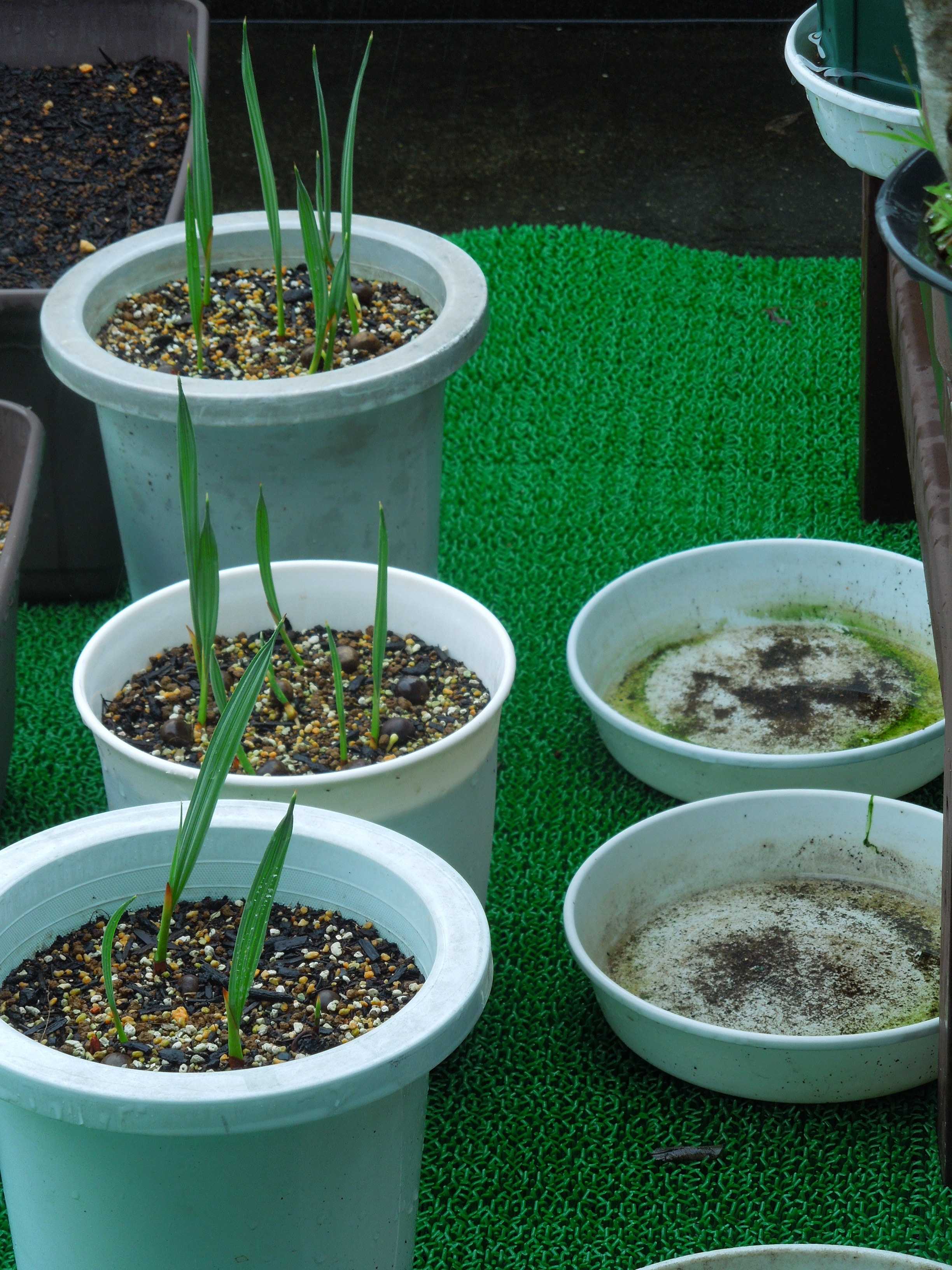 ブラヘア・アルマータは水切れを警戒して受け皿を使っていたが、雨が続いているので受け皿は止めにした。