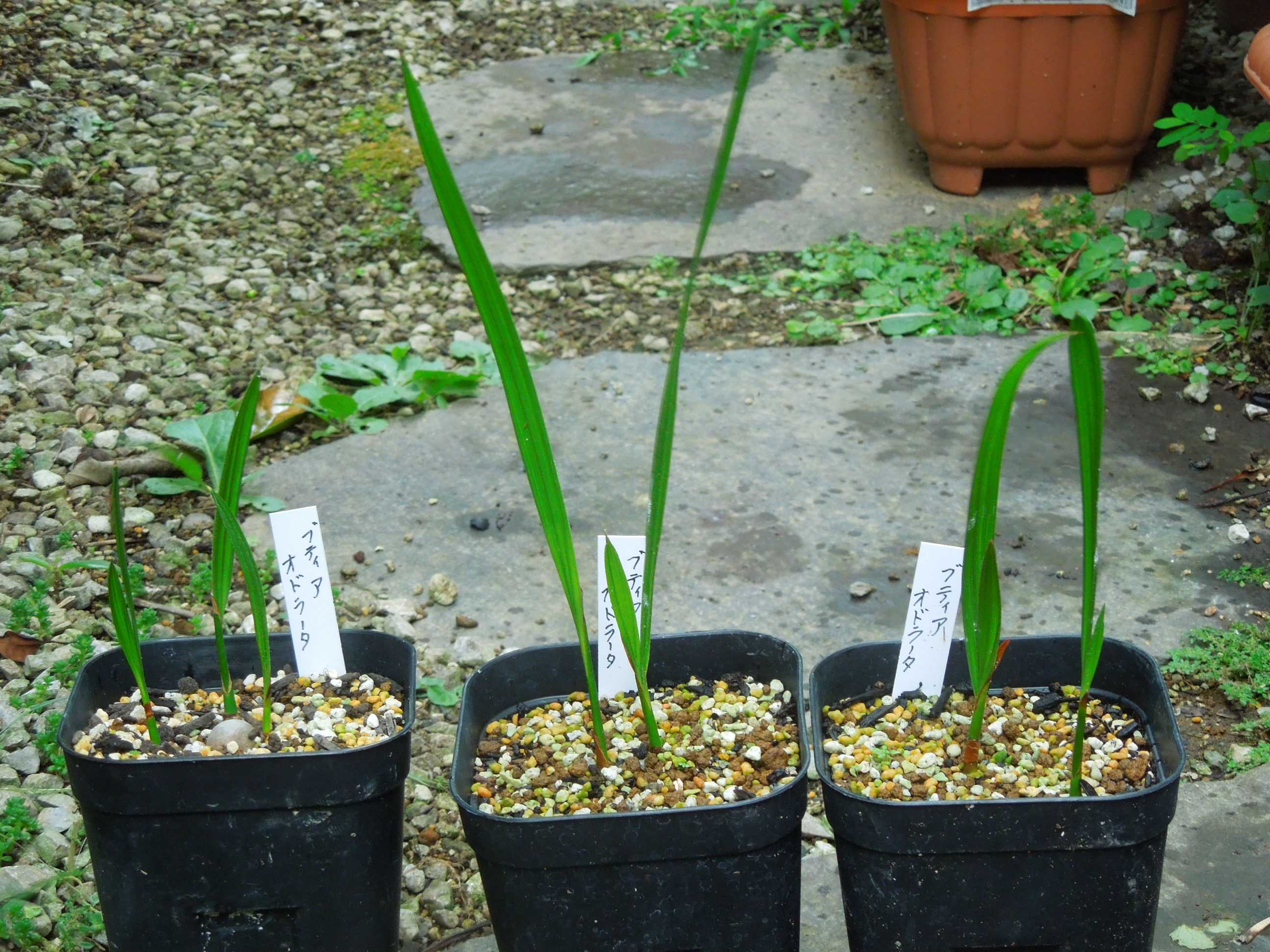 今年初めて蒔いたブティアは5月中頃に最初の発芽を確認。