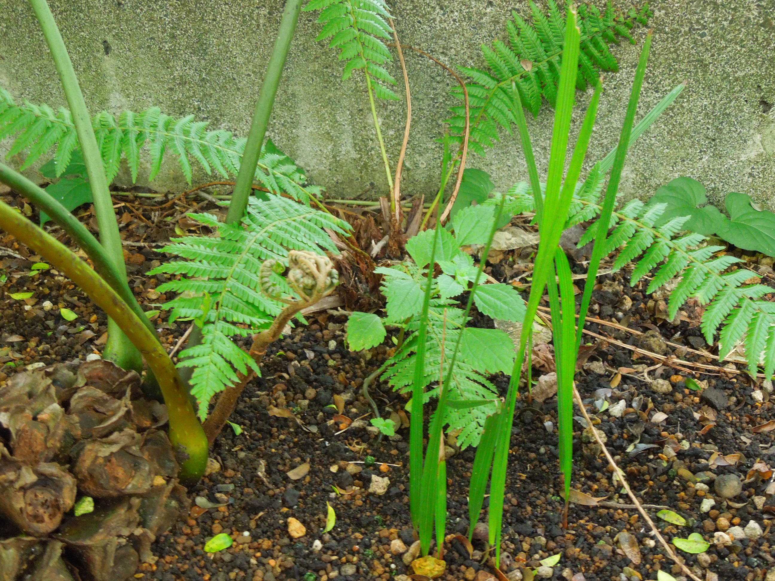植え付ける場所が無くなり、キンモクセイの根元に植えたブラヘア・アルマータ。