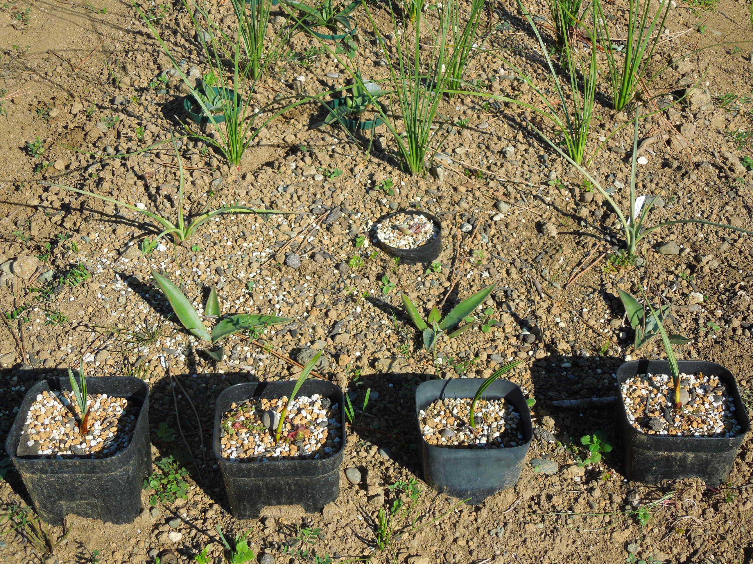 いくつかは避難できるように、パリーと同様に鉢のまま植え付け。