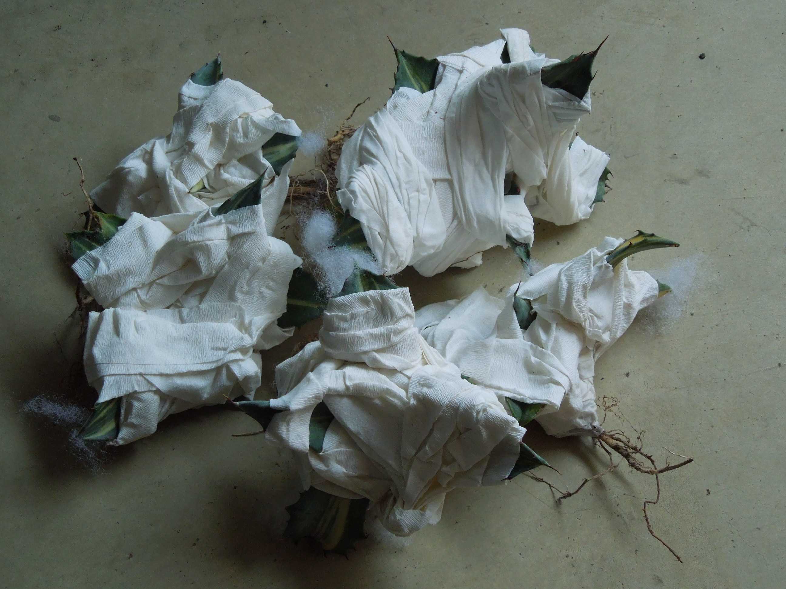 用土を落ち着かせる程度に水を遣って屋内管理。