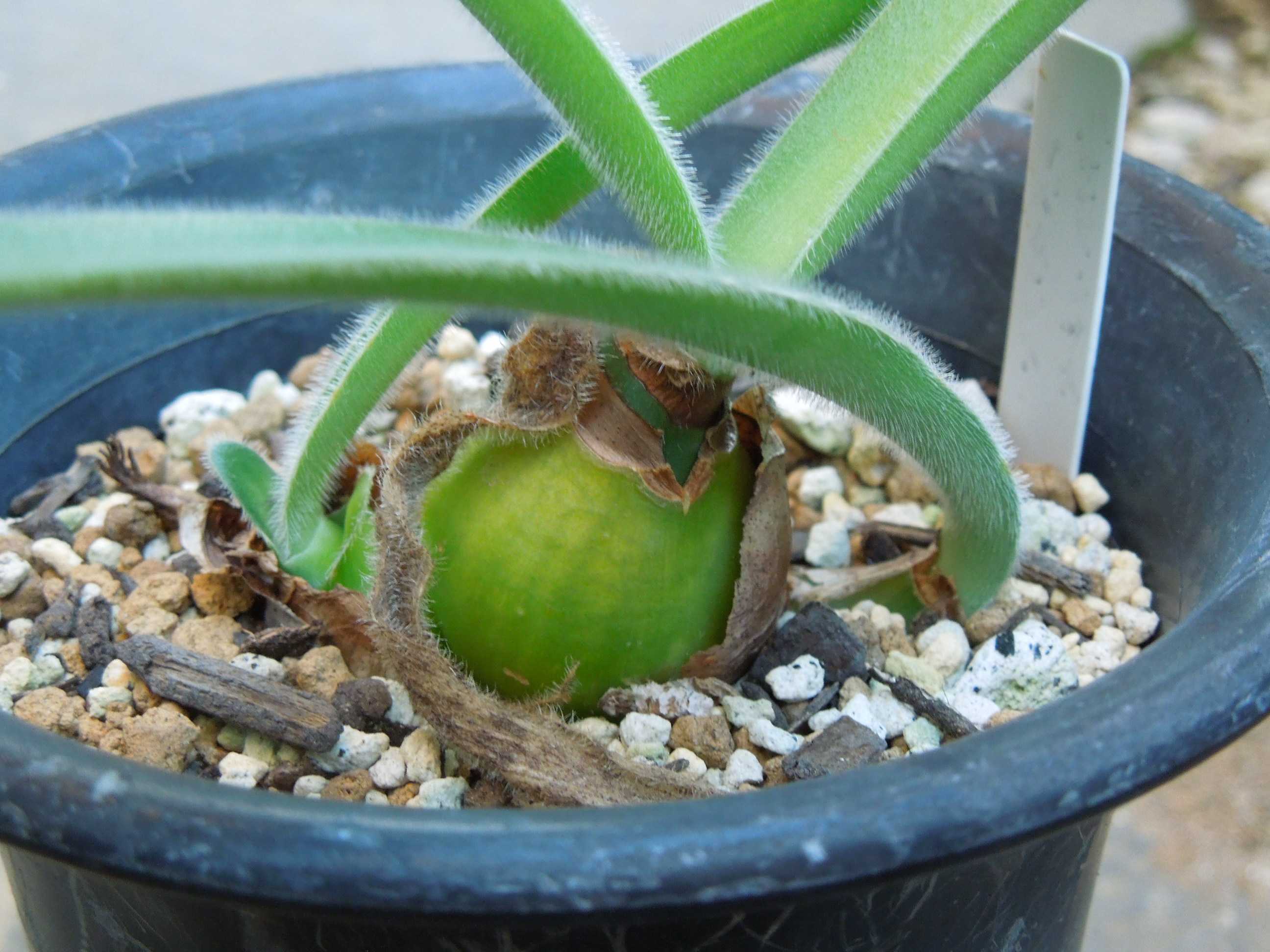 虫に球根をかじられていたハエマンサス・プベッセンス。