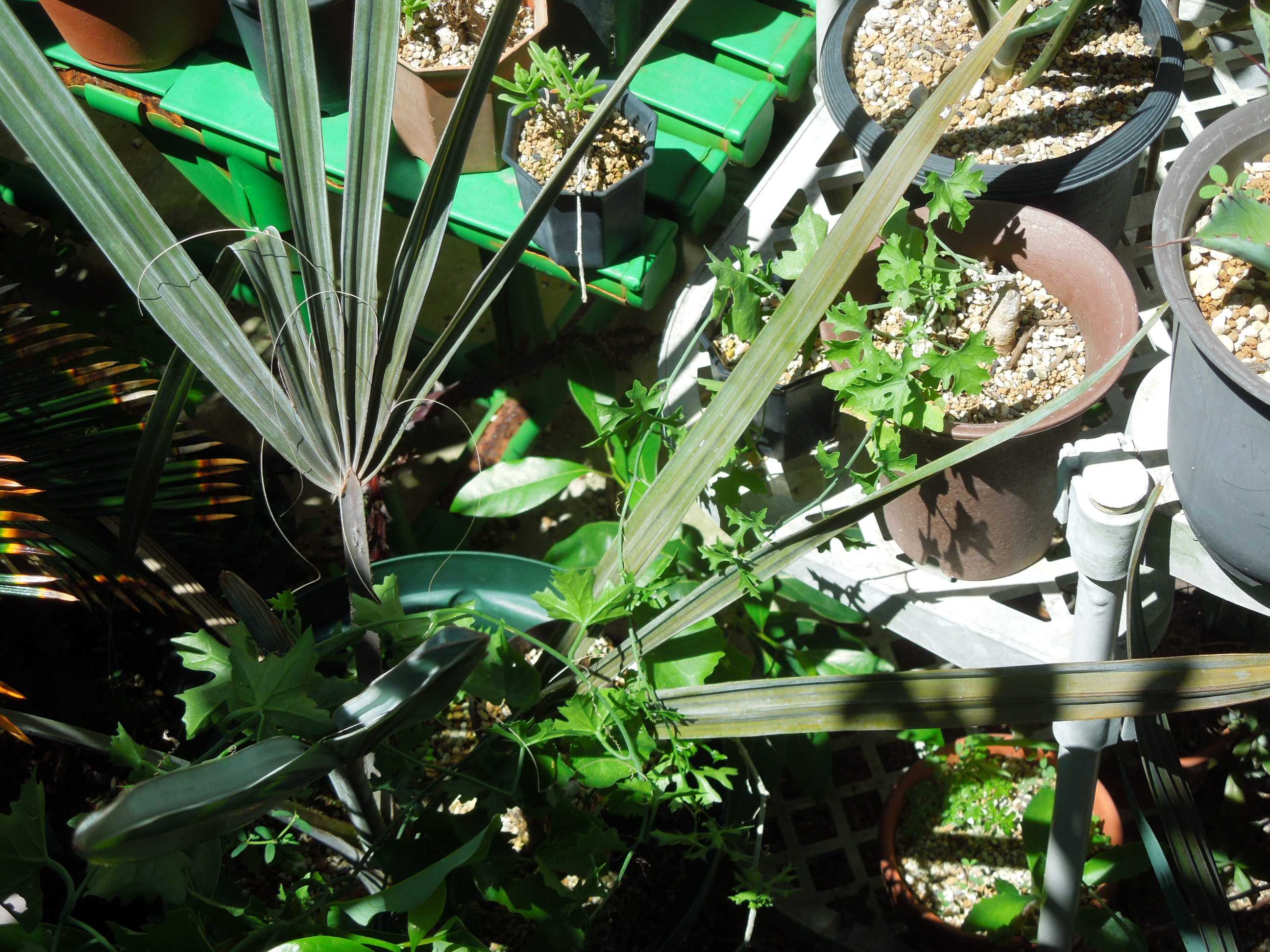 同じ様な場所に置いてあるテヌイセクタ(茶色の鉢)