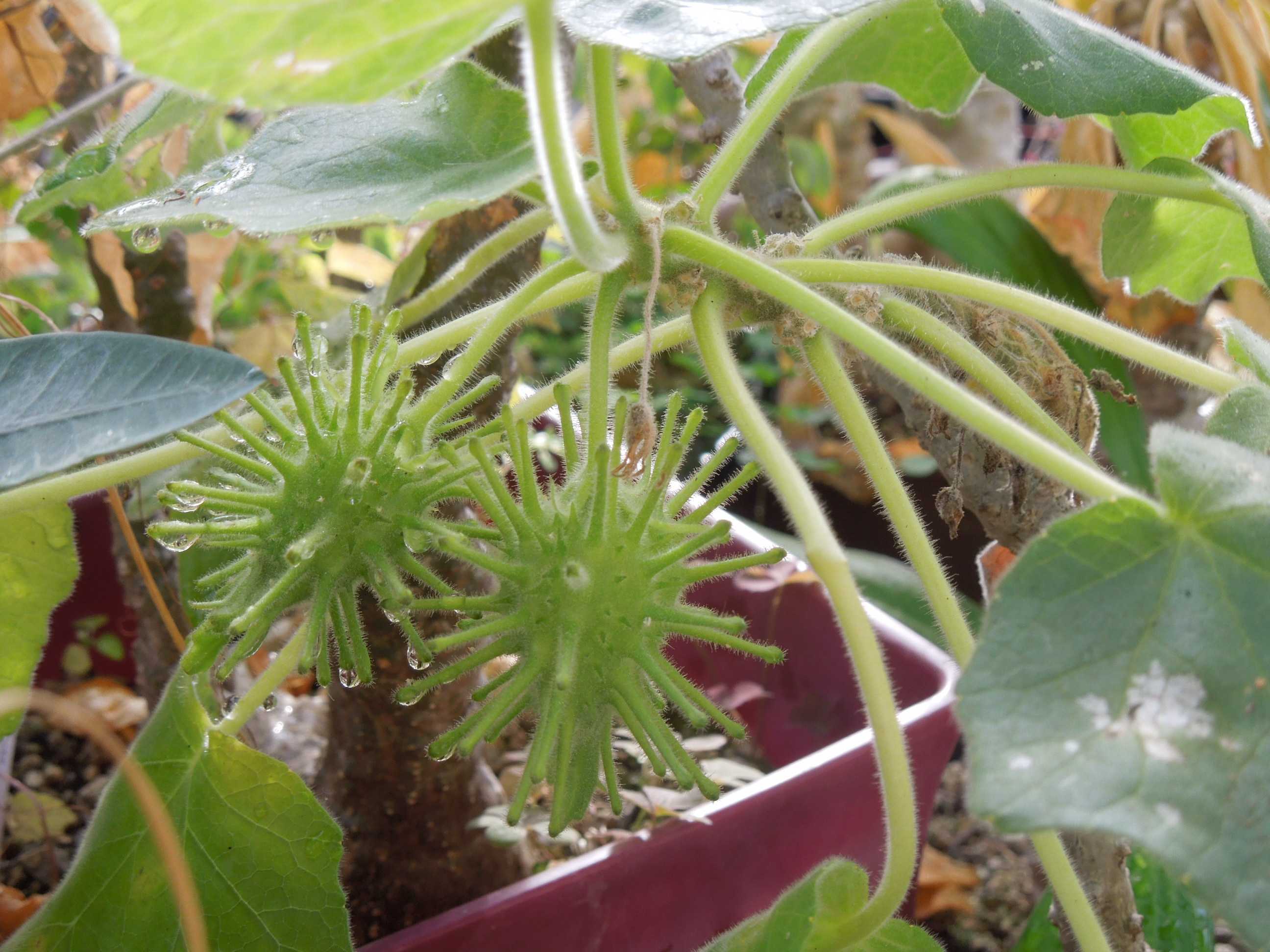 凶悪な刺に注意して、ハサミで外皮をカット。