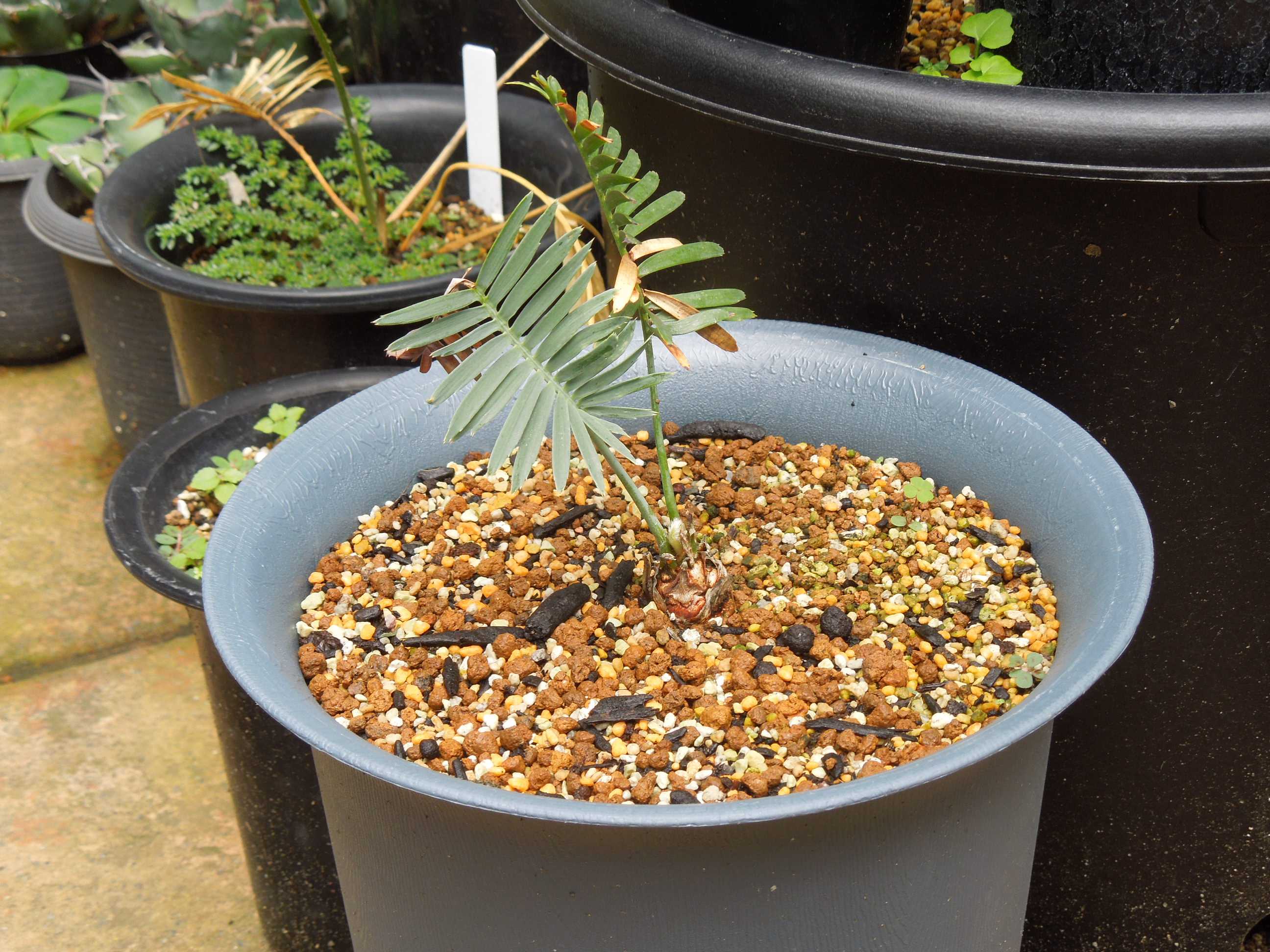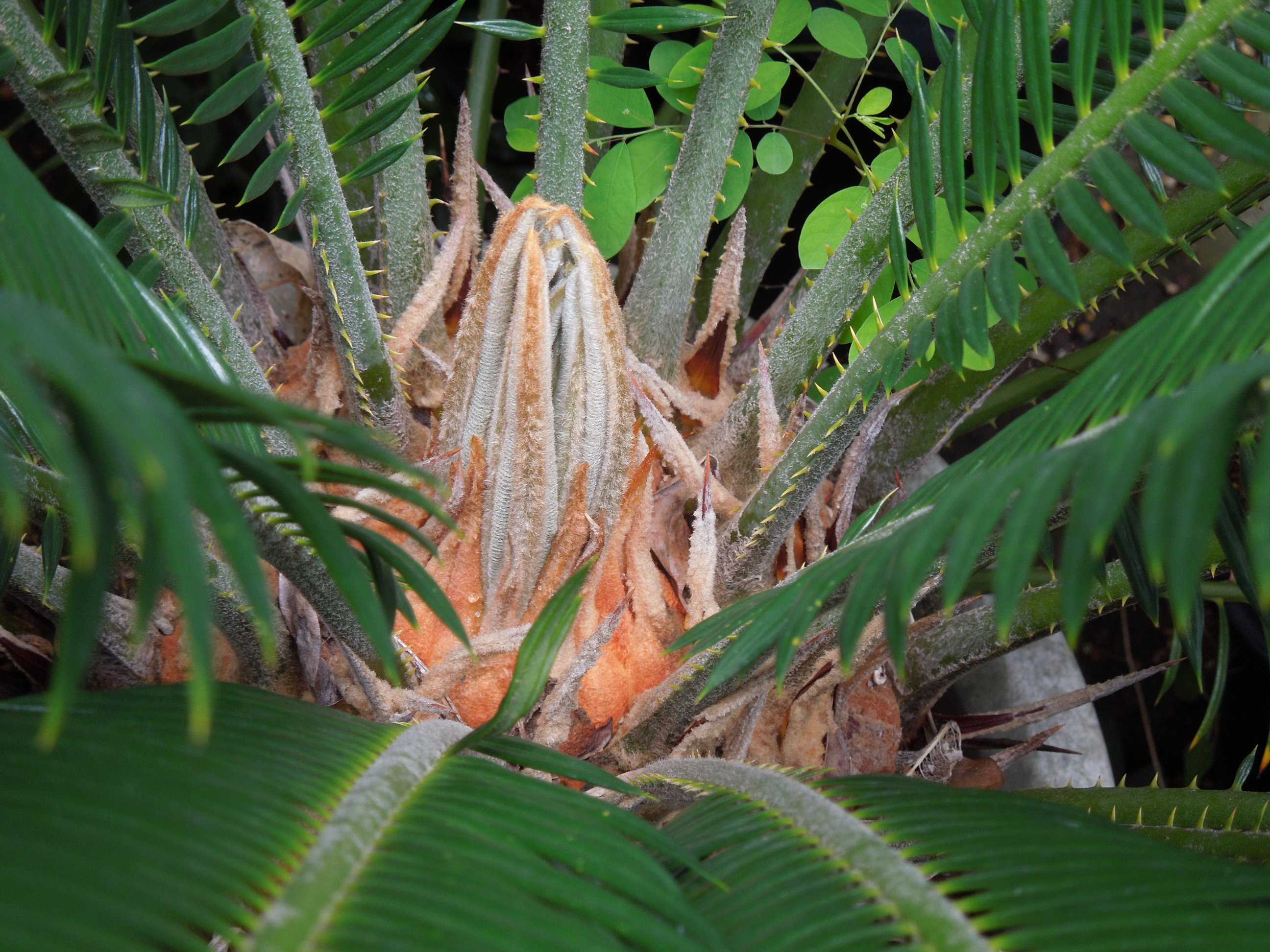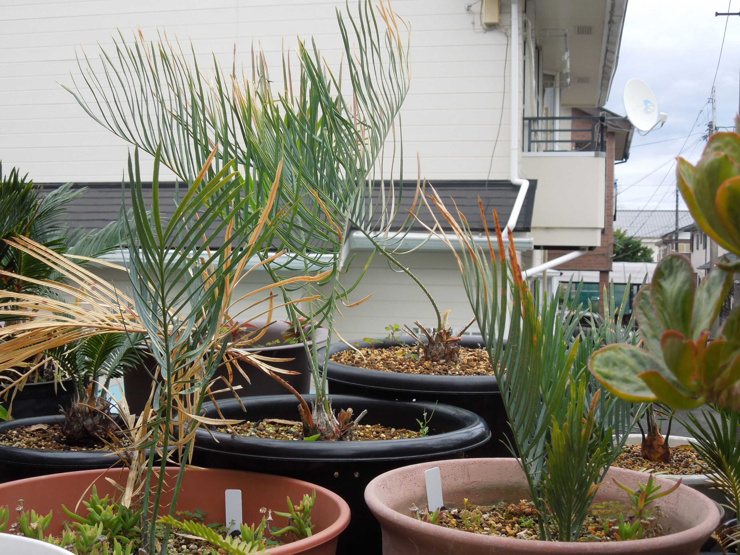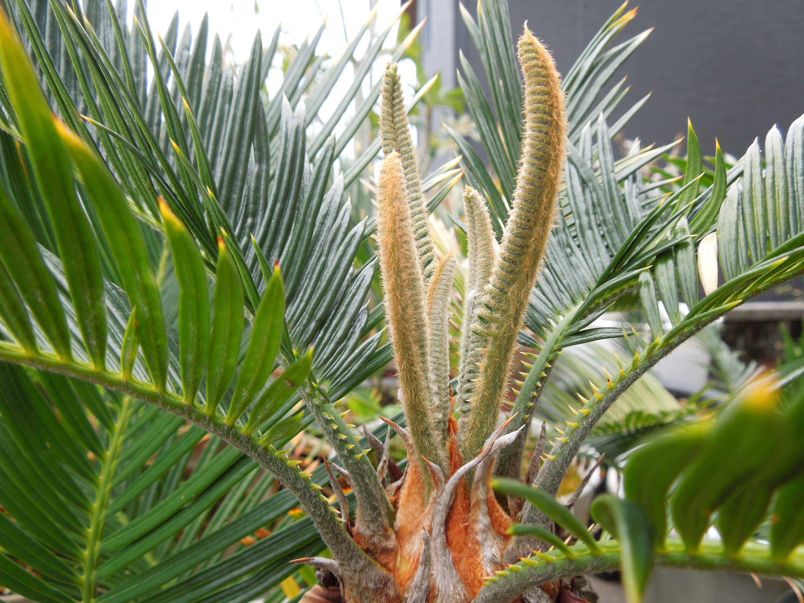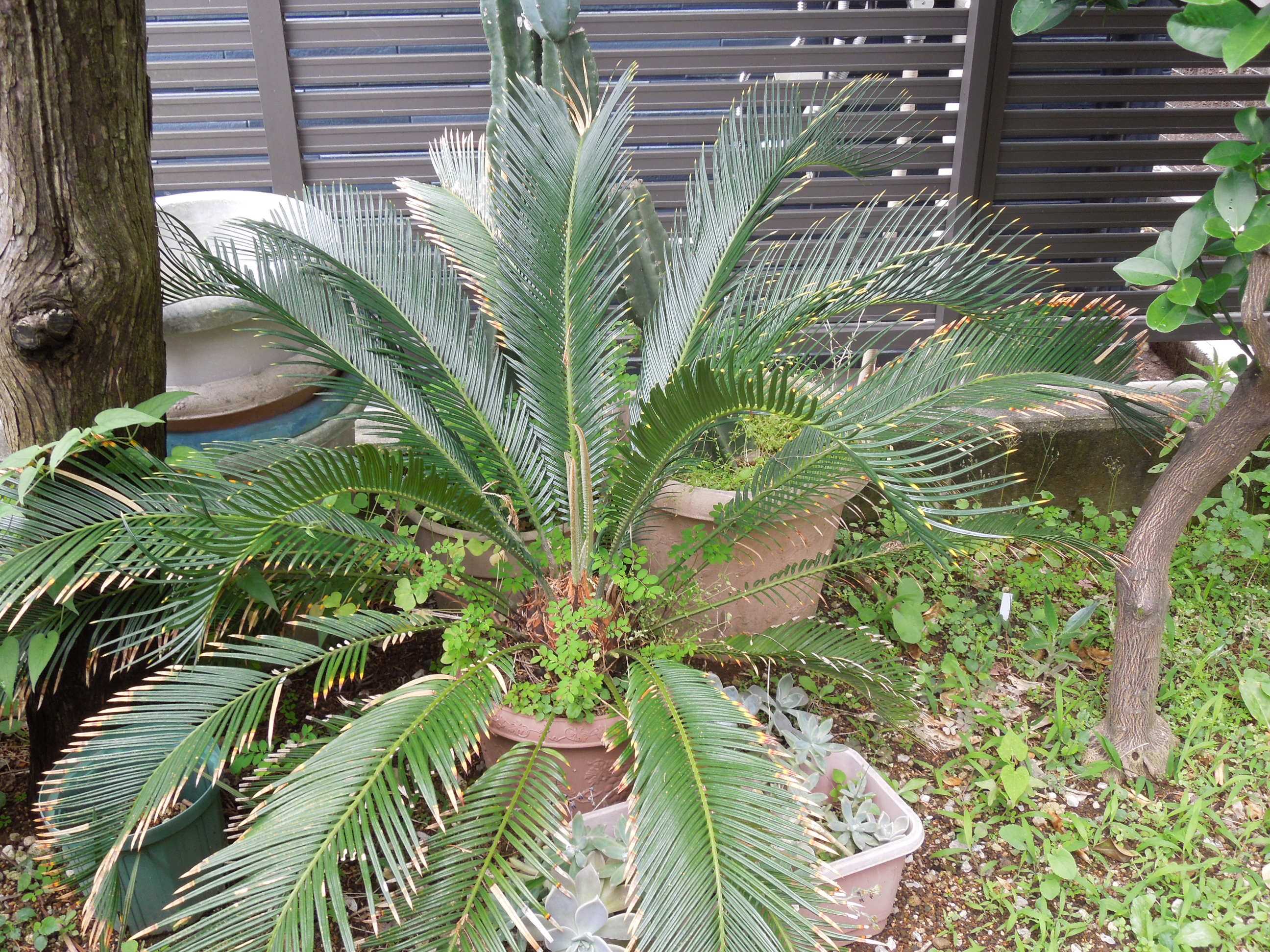 今年、最初に新芽を出した金環ソテツ(レボルタ・オーレア)はほとんど葉を展開してきた。