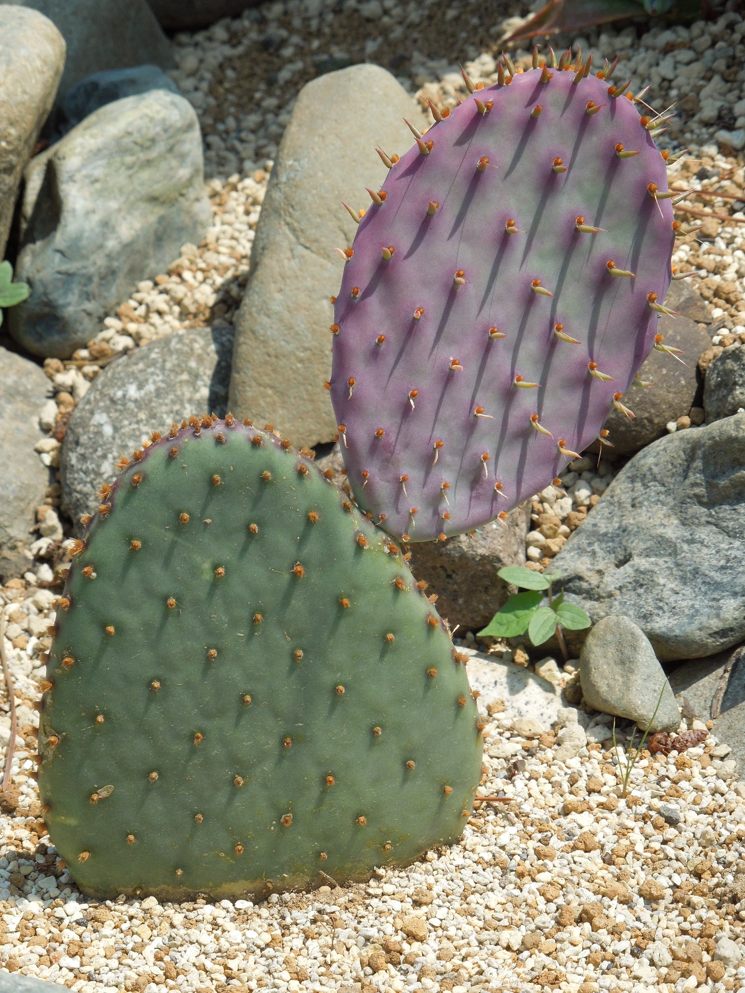 紫に紅葉するというオプンチアを購入したが、サンタリタだけはいろいろで訳が分からない。