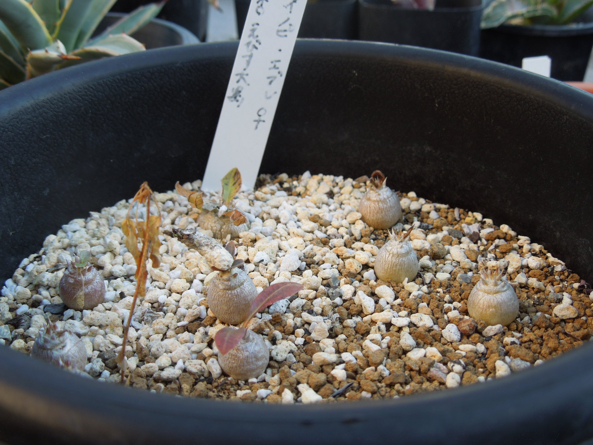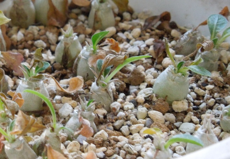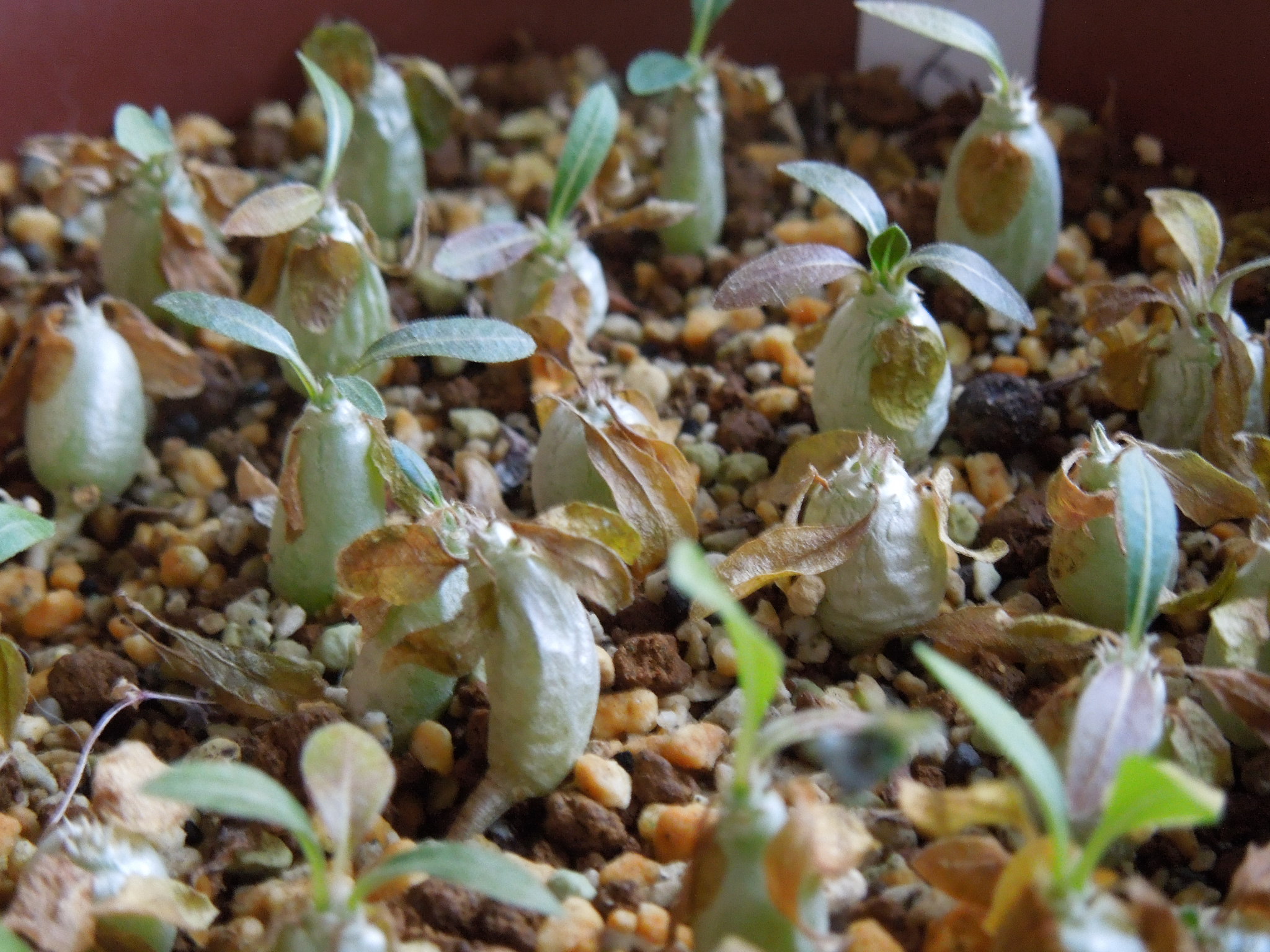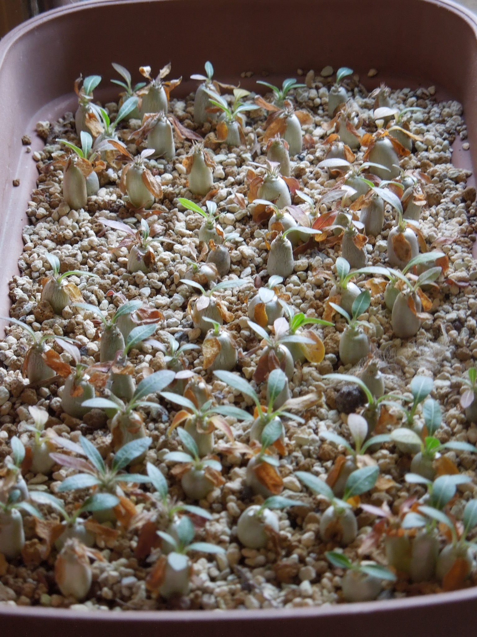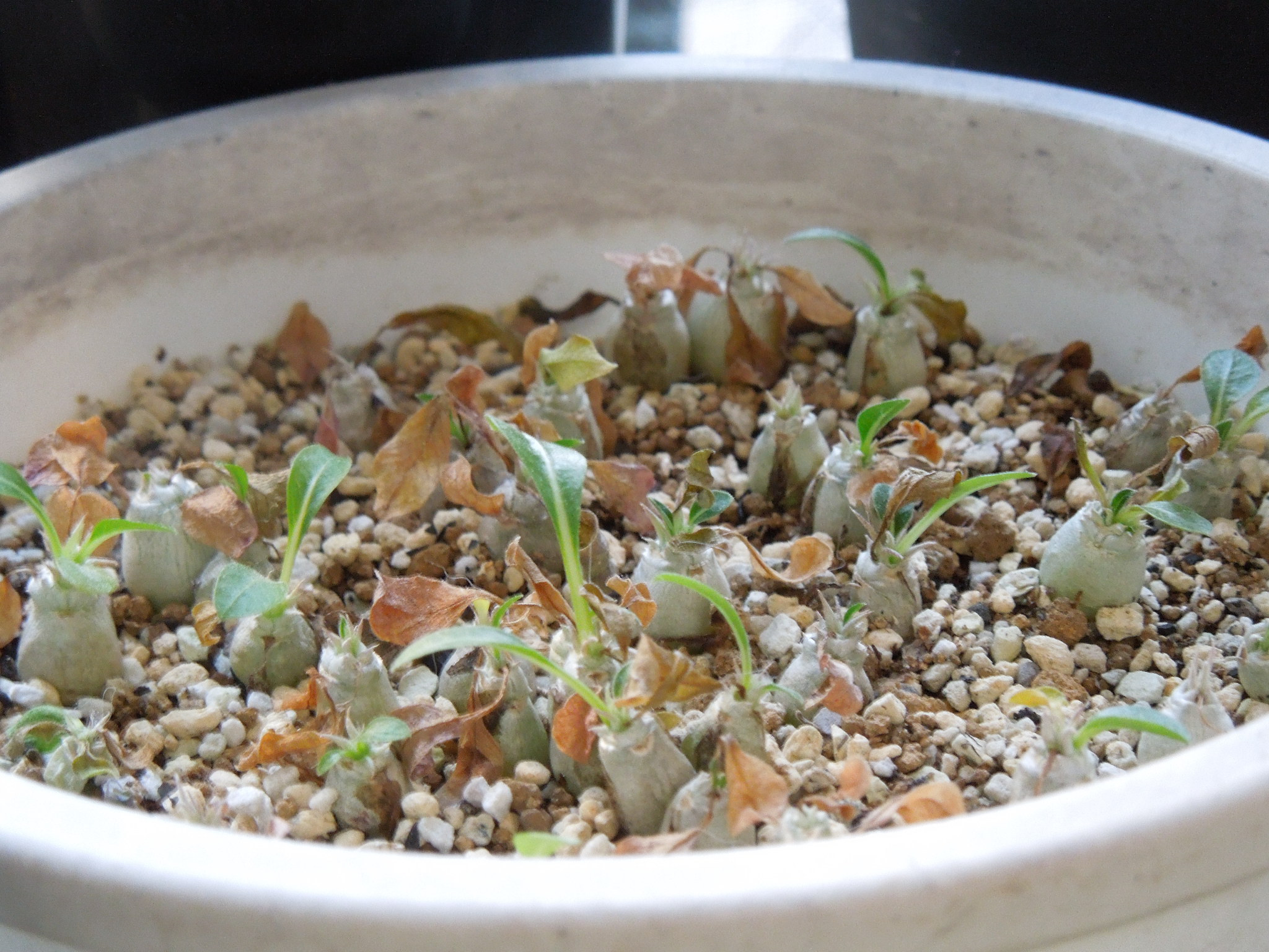 屋内だと休眠しないのか、水切れのようで少し皺になっている苗も有る。